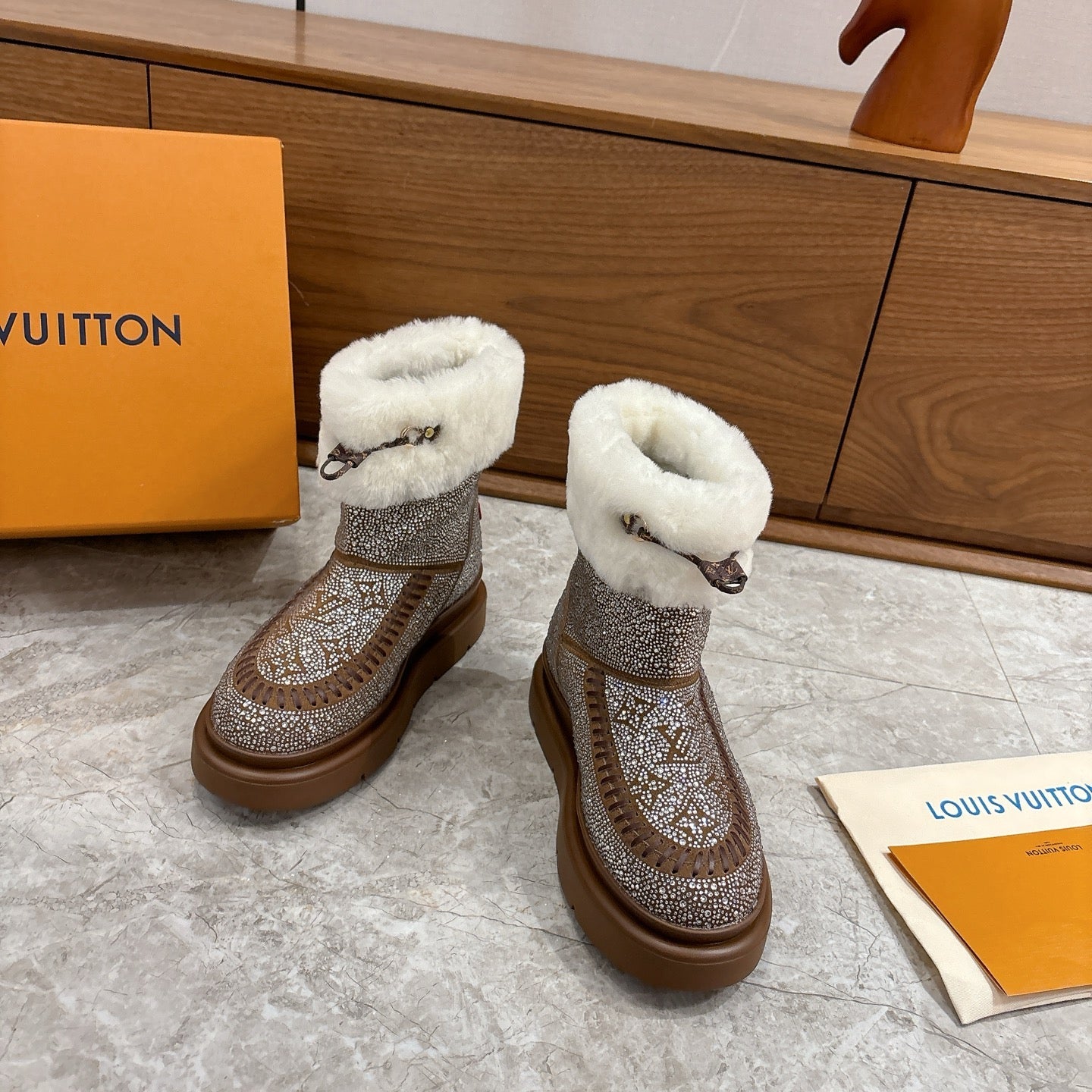 LV 2026 Cortina Ankle Boot Silver Brown White Silver Sequin Wool 594927