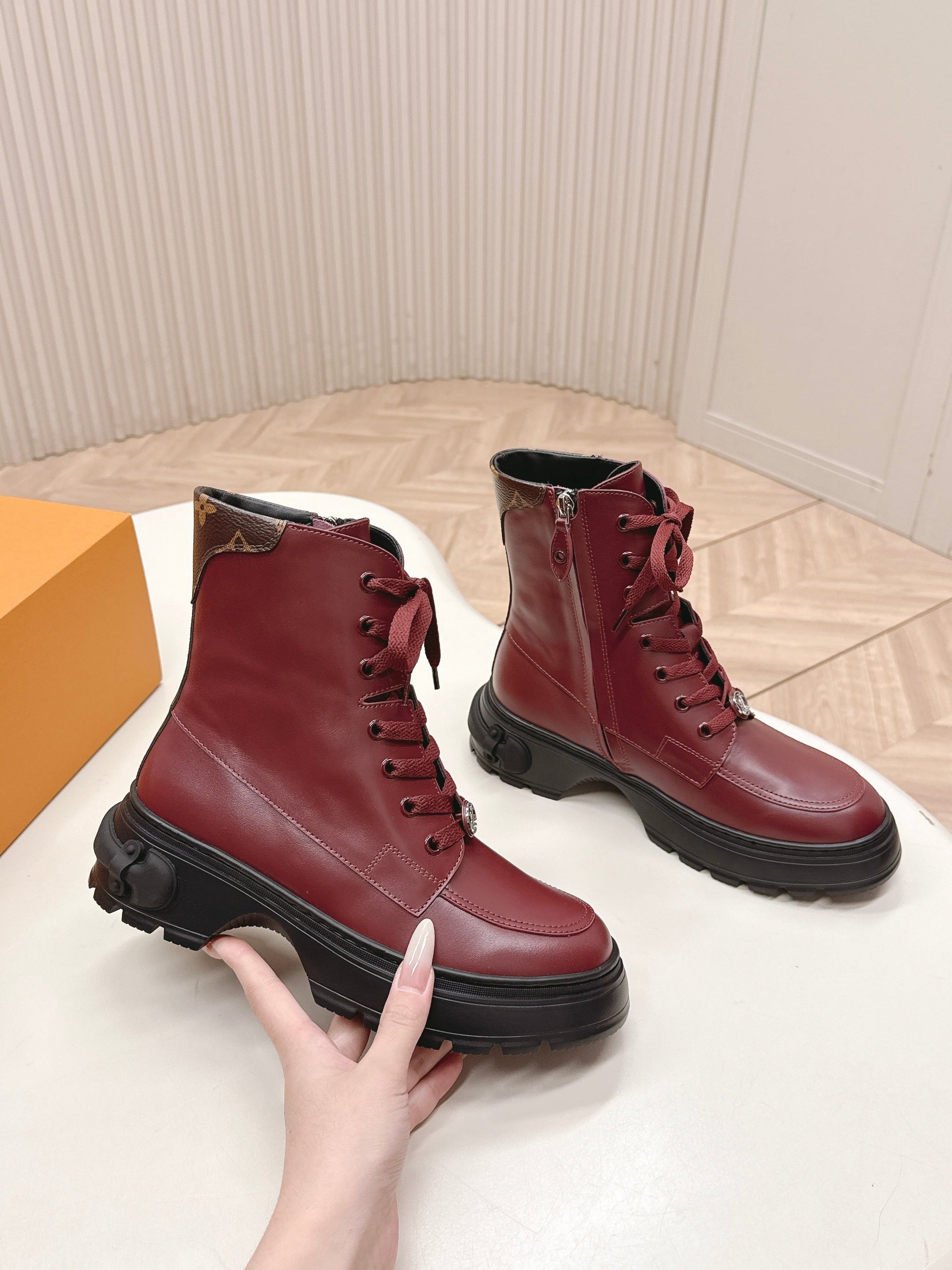 LV 2026 Laureate Platform Desert Boot Burgundy Calfskin 595452