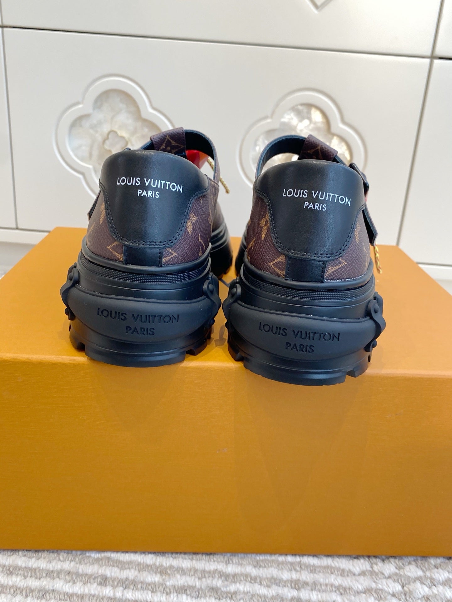 LV 2026 T-strap Loafer With Heart-shaped Brown Red Canvas Cowhide 595877