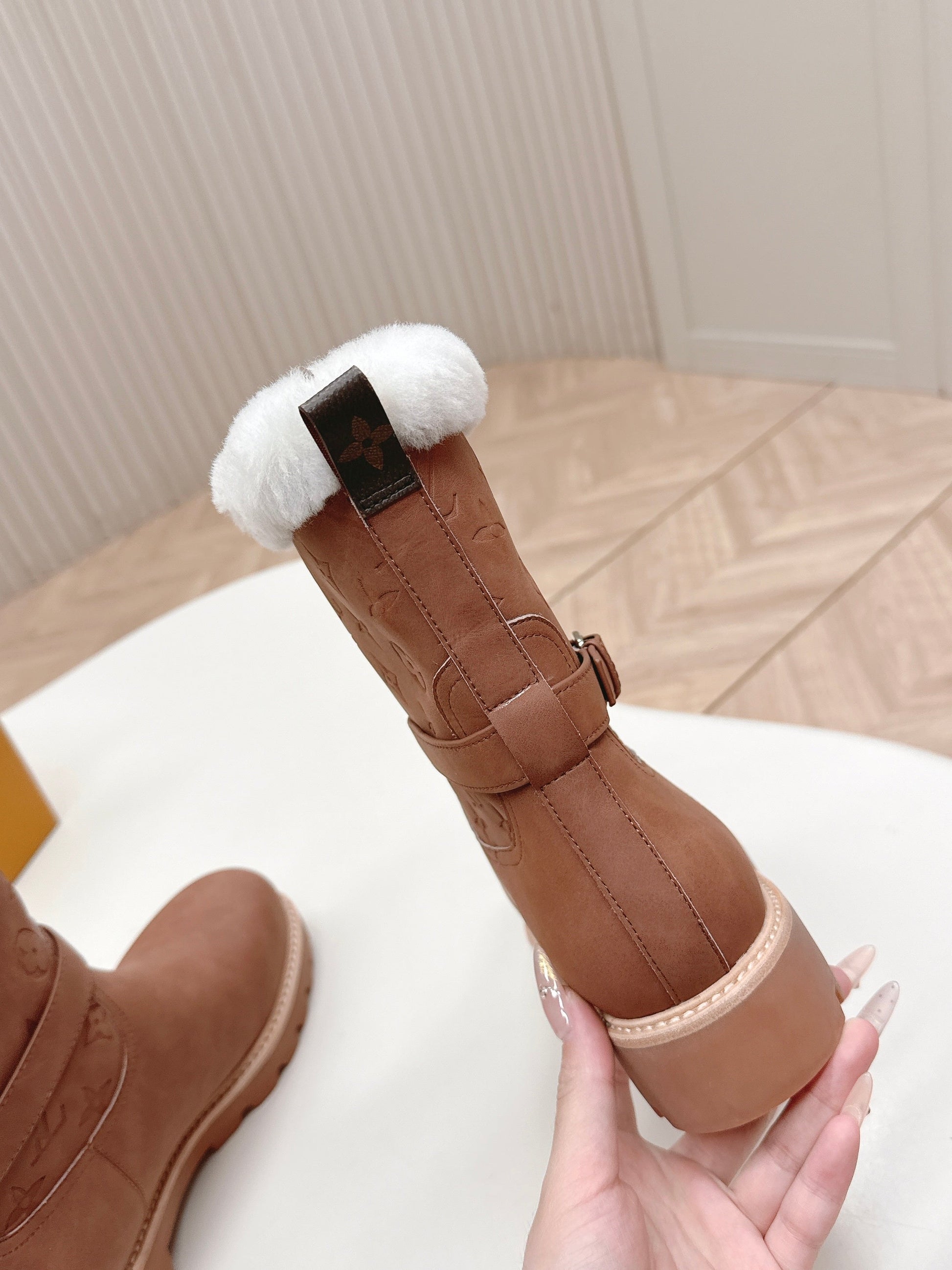 LV 2026 Territory Ankle Boot Brown White Nubuck Calf Leather 595442