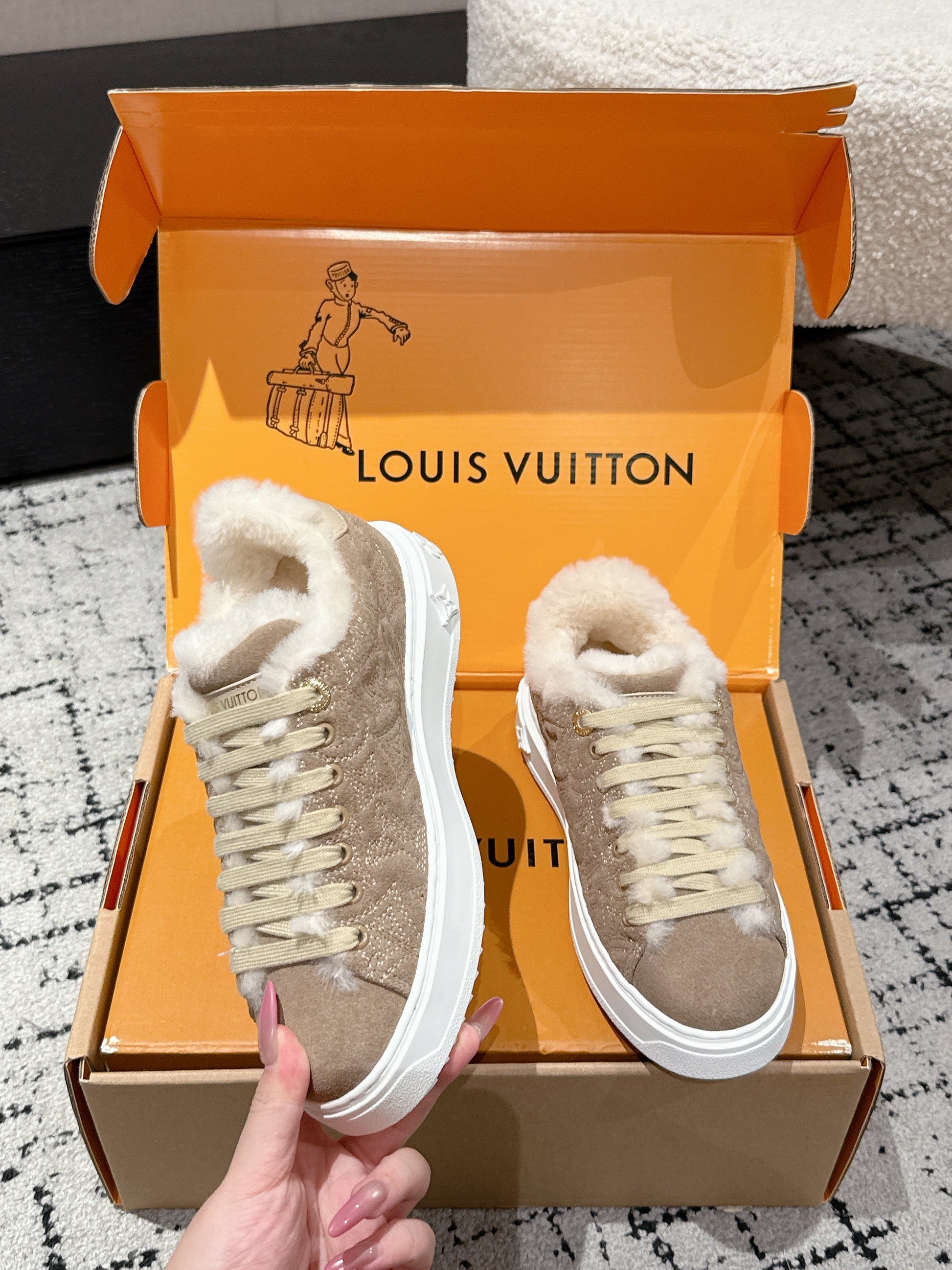 LV 2026 Time Out Sneaker Beige White Suede Wool 595291