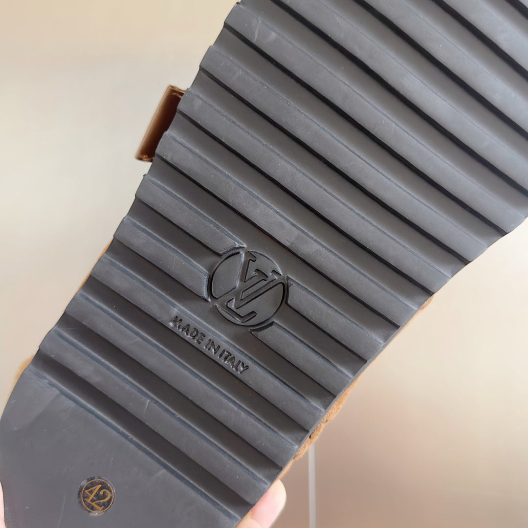 LV 25 Birkenstock Platform Slippers Brown Suede Wool 576215