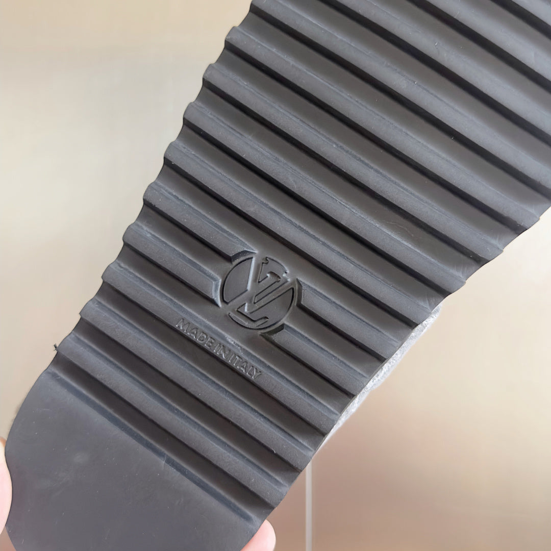 LV 25 Birkenstock Platform Slippers Gray Denim Wool 576214