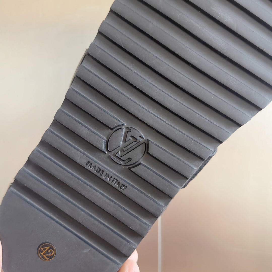 LV 25 Birkenstock Platform Slippers Navy Blue Suede Wool 576217