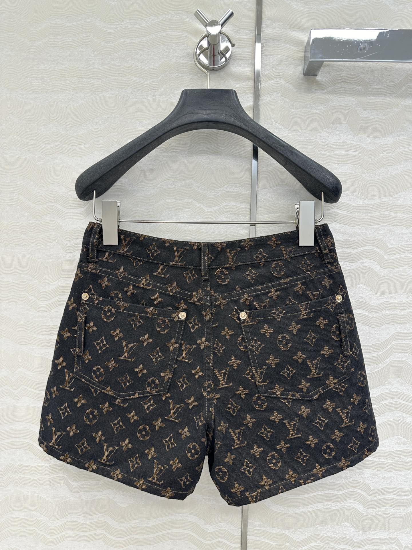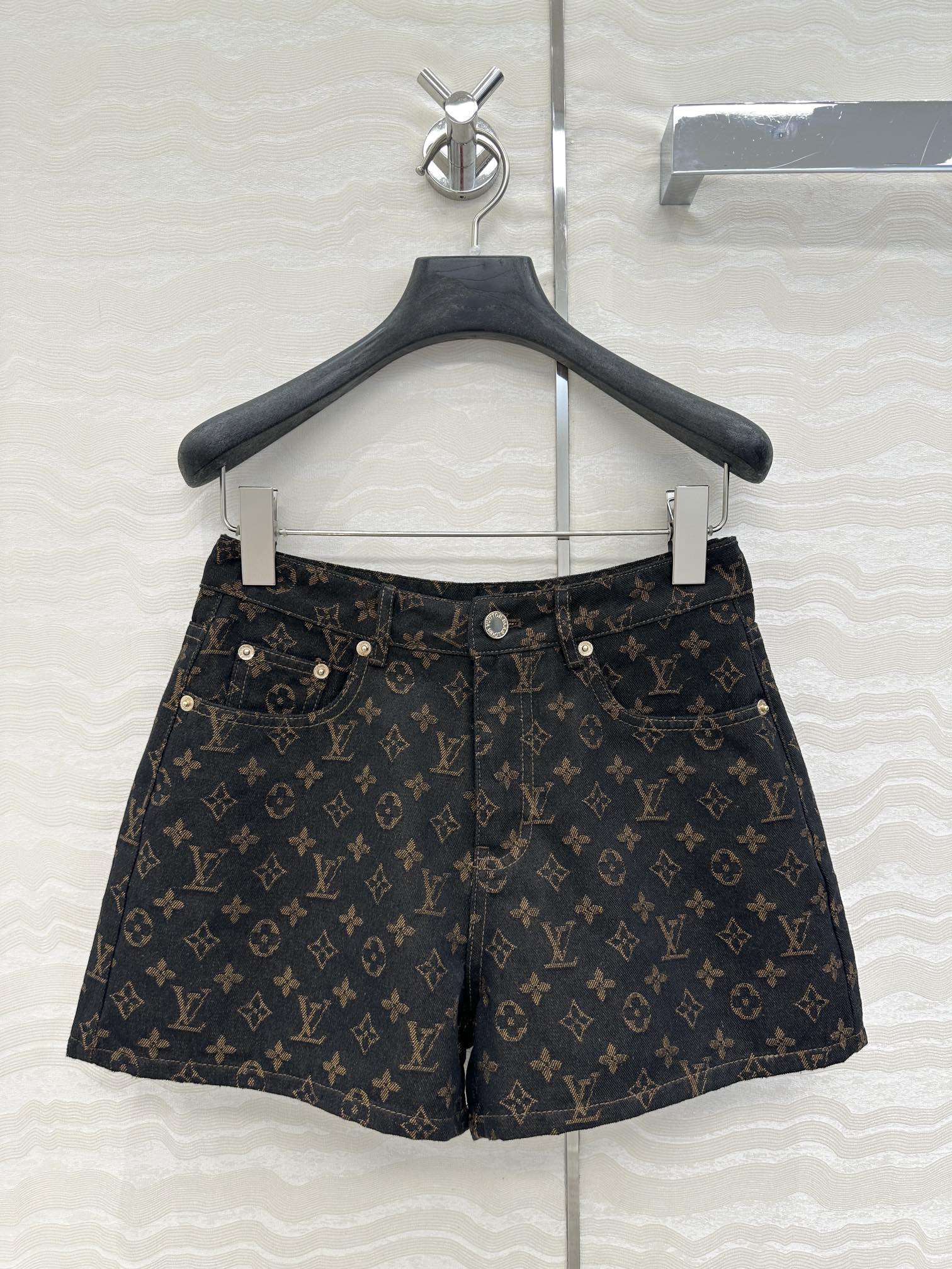 LV 25 Classic Logo Denim Shorts Black Cotton