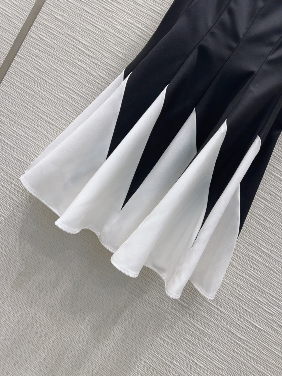 LV 25 Elegant Hepburn Style Suspender Dress Black White Polyester Wool