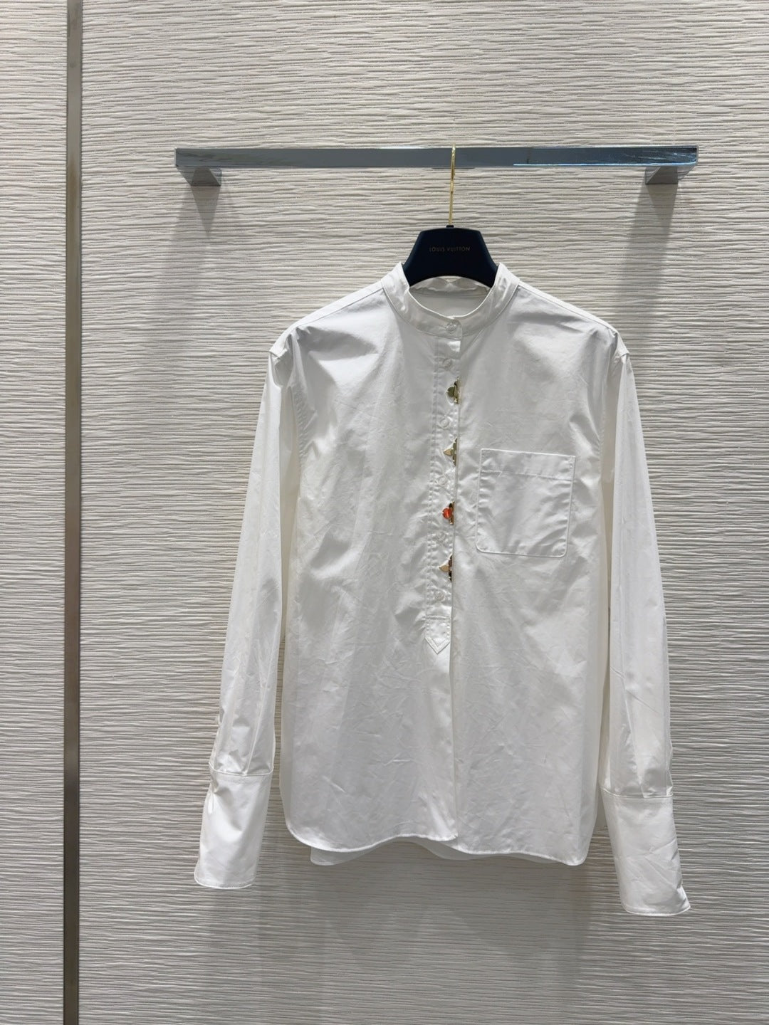 LV 25 Long Sleeve Mandarin Collar Shirt White Cotton