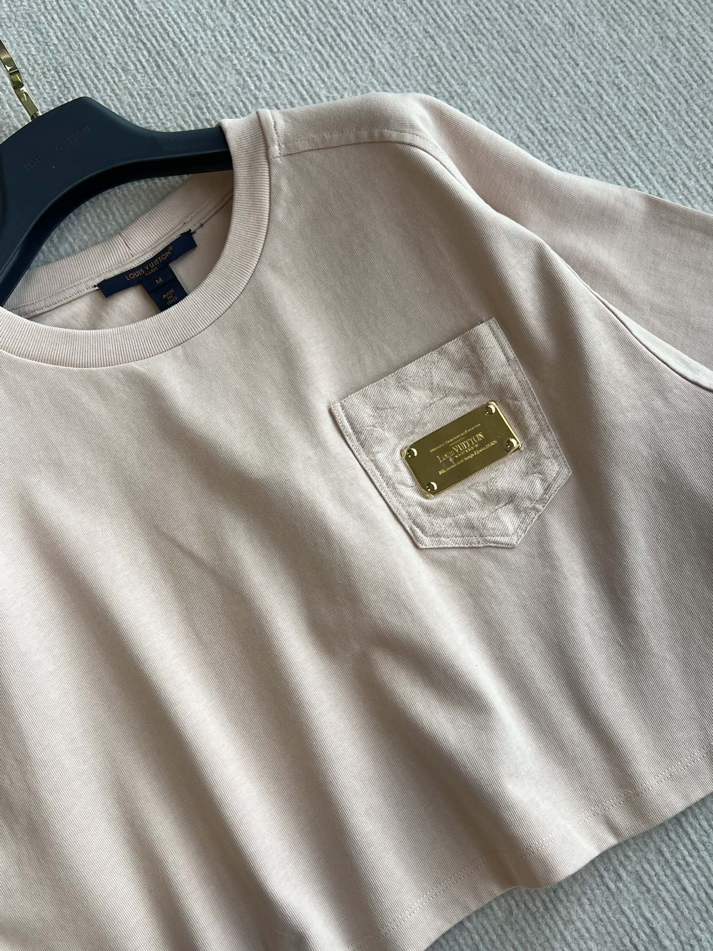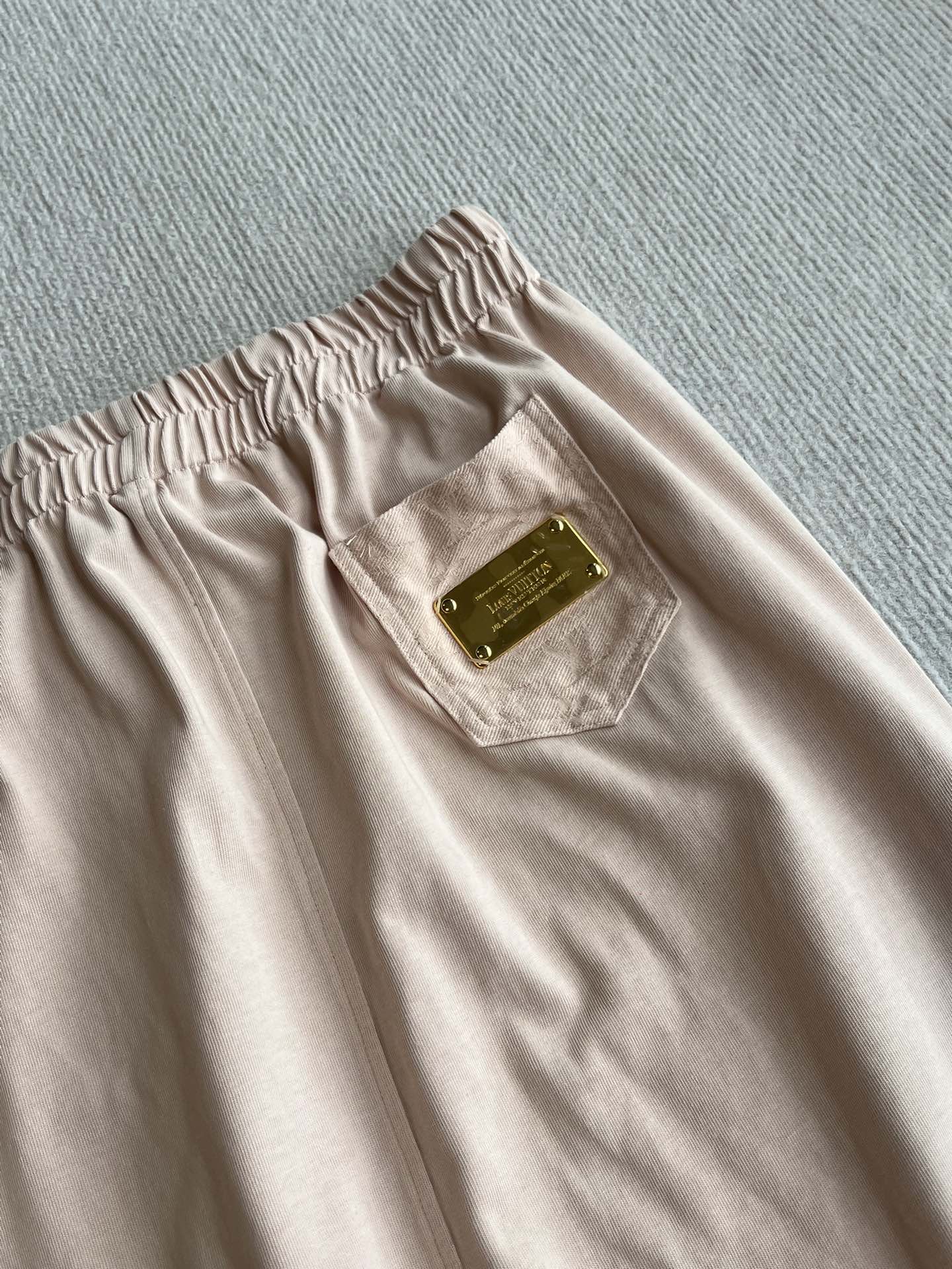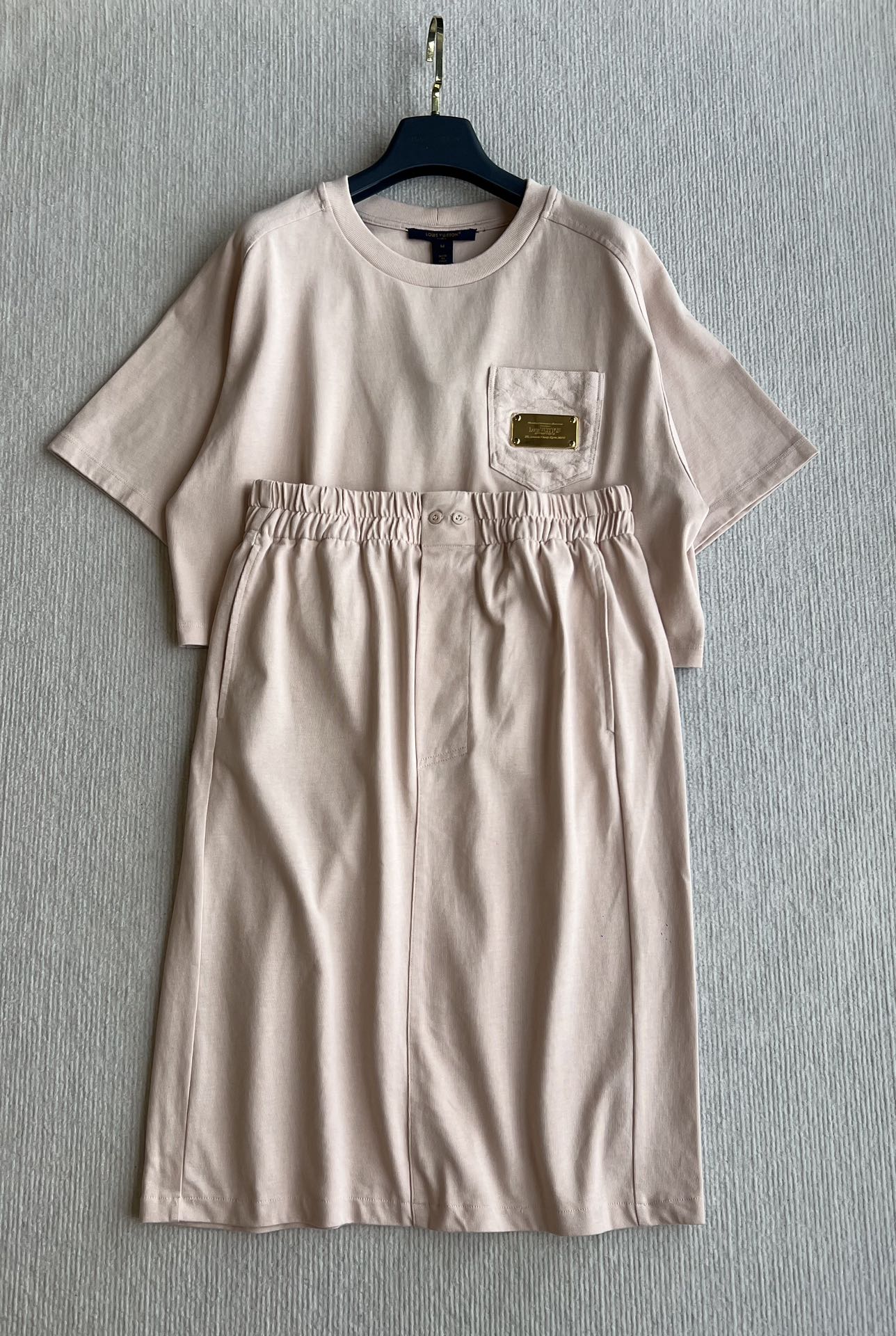 LV 25 Monogram Pocket Patch Iron Elastic Waist Set Light Pink Cotton