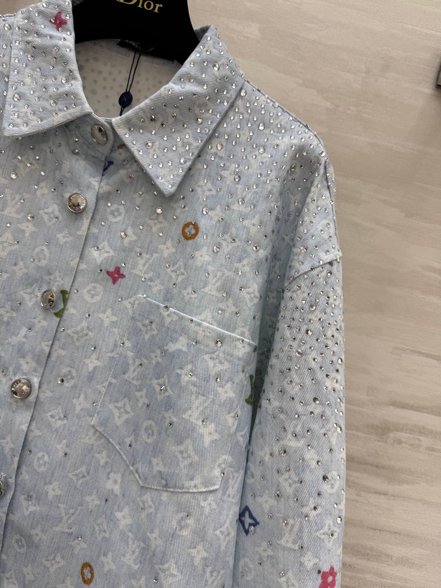 LV 25 Star-Studded Rhinestone Light Blue Denim