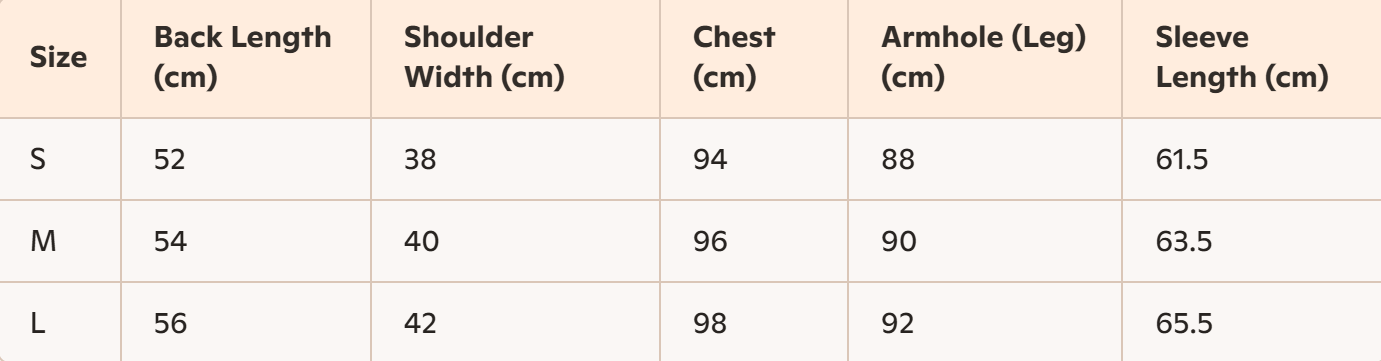 - Size: S, M, L