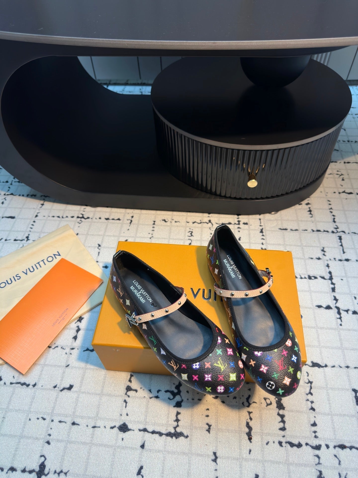 LV Ballerine Romy LV x TM Black with Monogram Multicolore Leather 218914