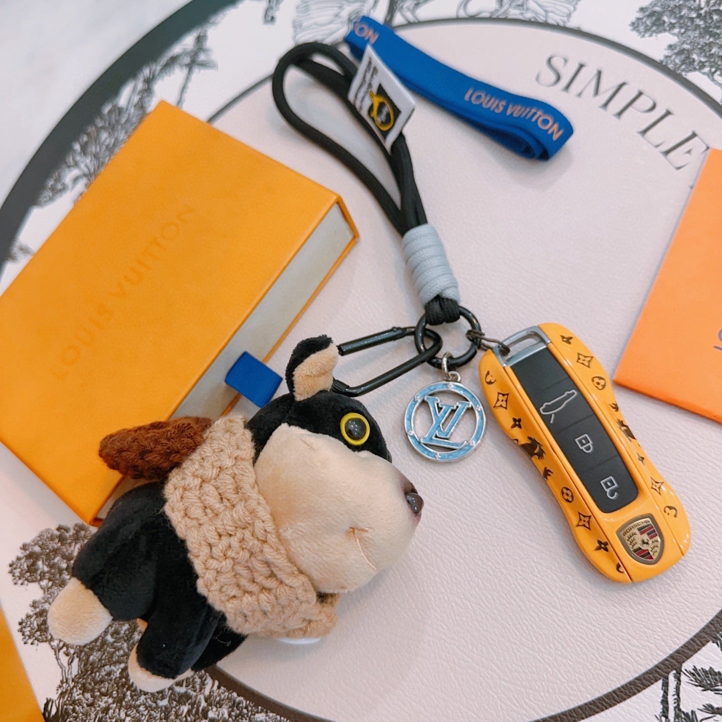 LV Black Beige Plush Dog Charm