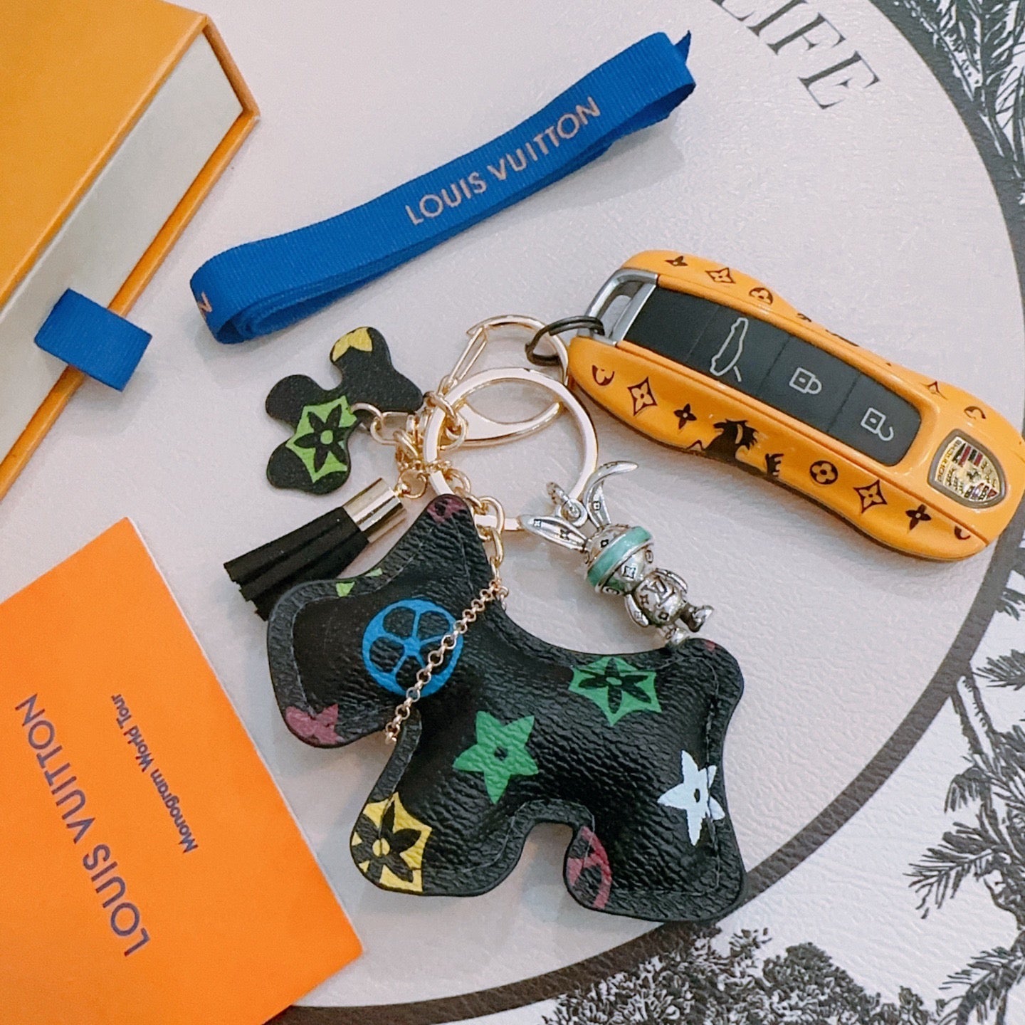 LV Black Dog-Shaped Bag Charm
