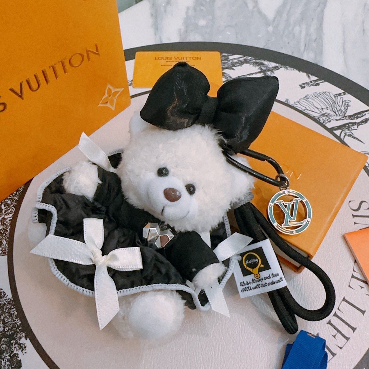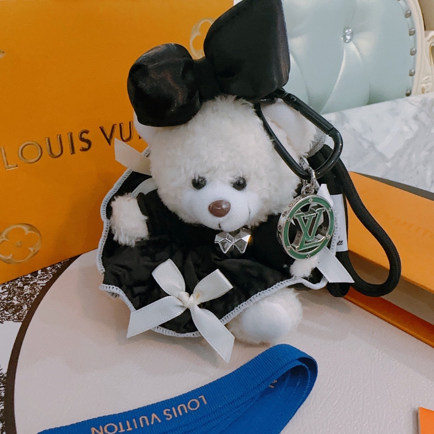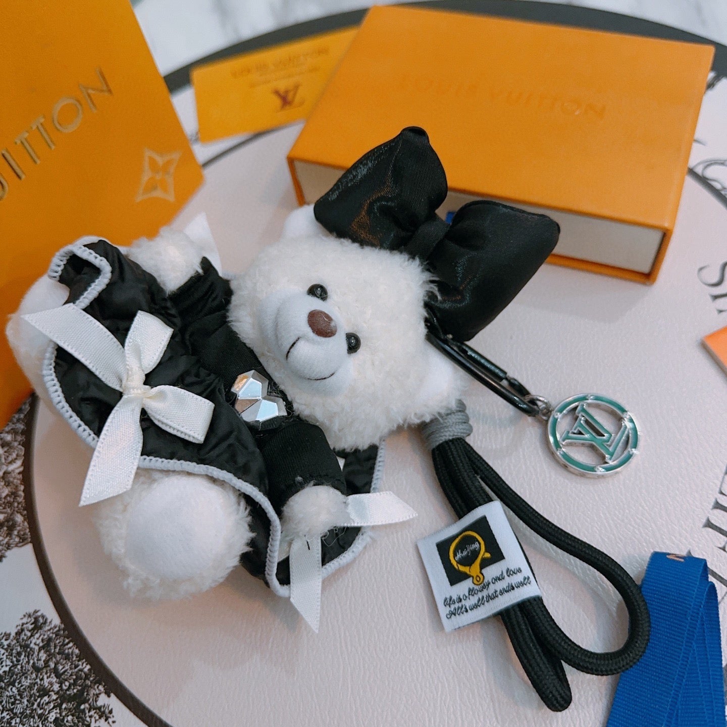LV Black mix White Louis Bear Bag Charm