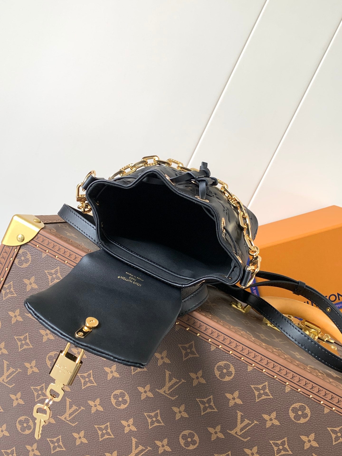 LV Coussin 20cm Backpack Black Gold Leather 252655