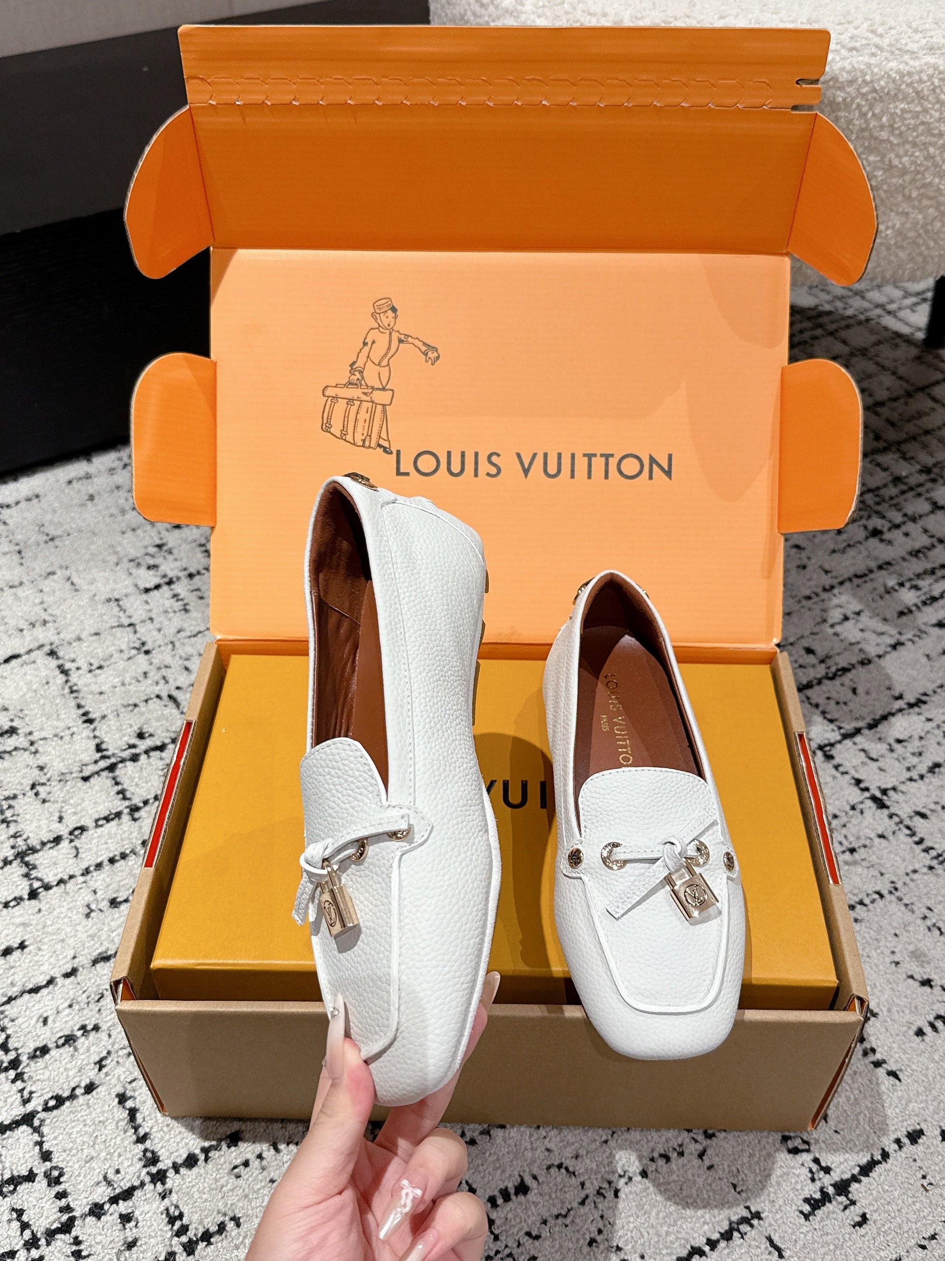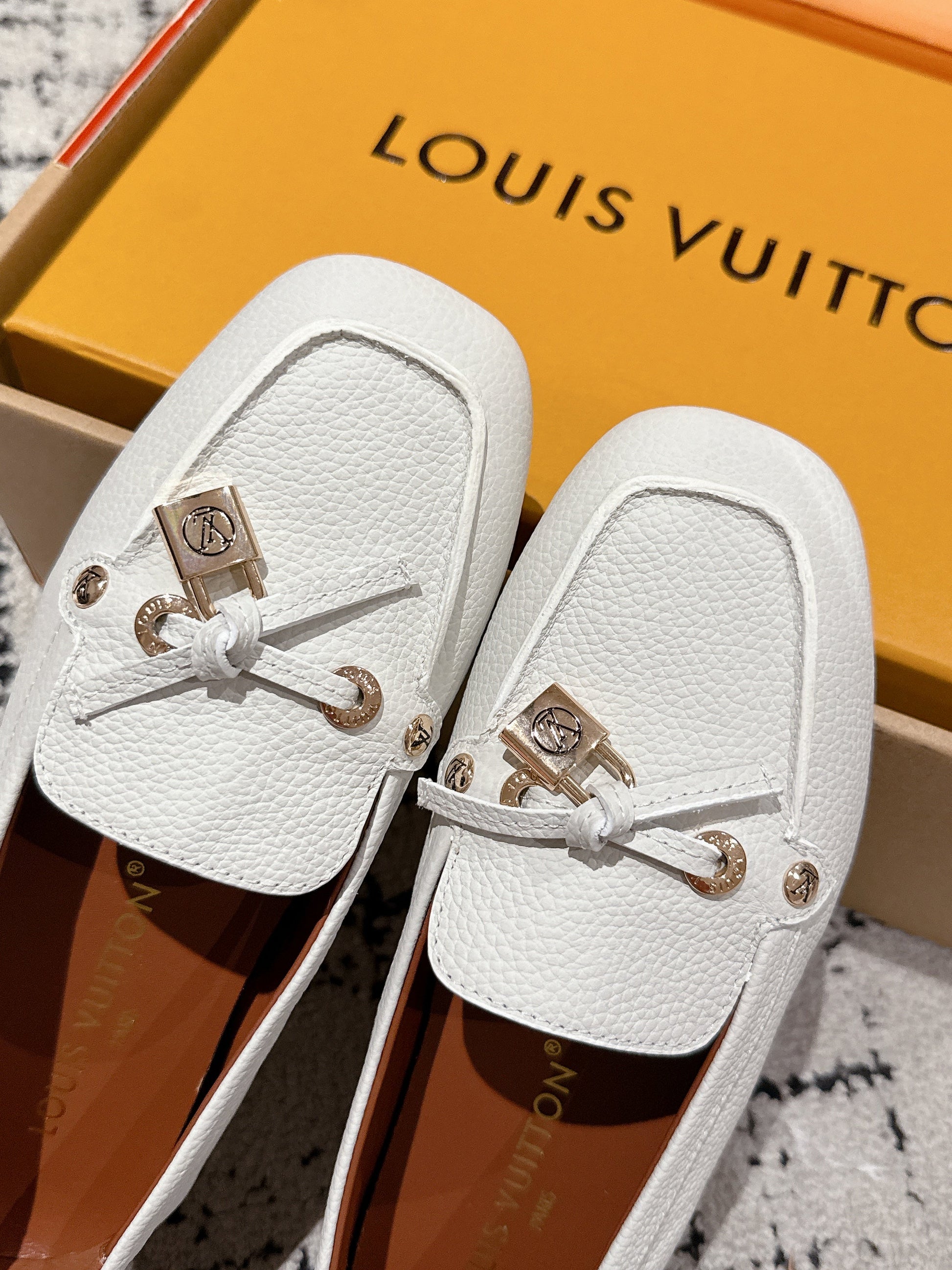 LV Flat-soled lock loafers white cowhide 383378