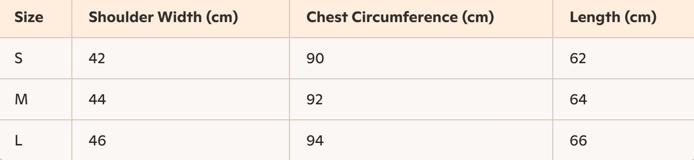- Size: S, M, L