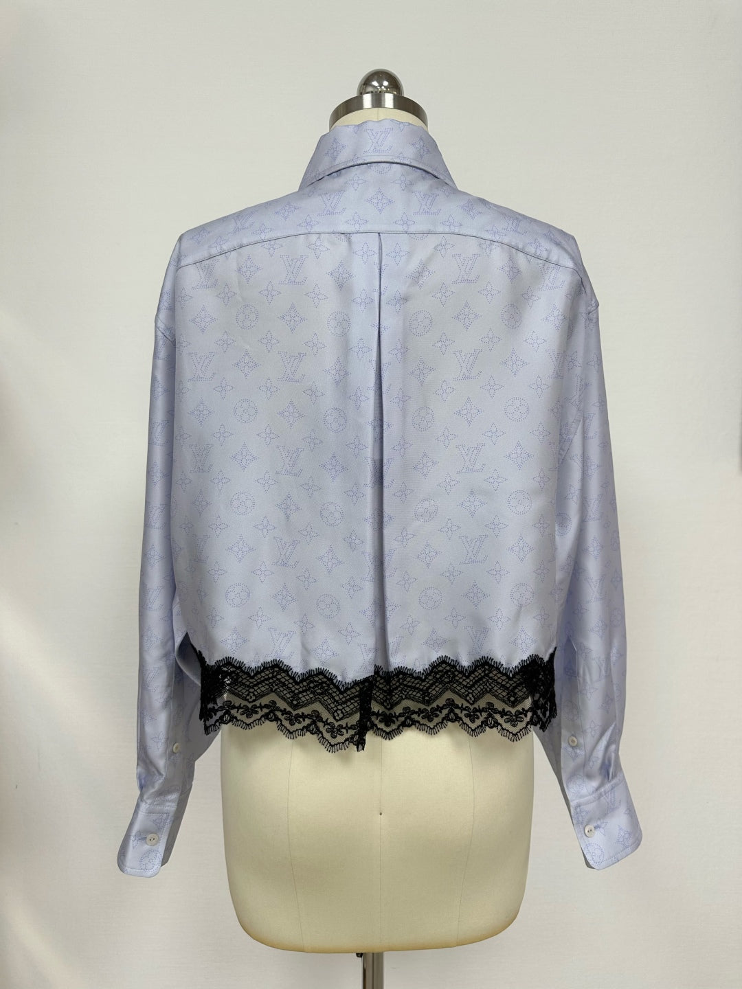 LV Monogram Pattern And The Lace Trim Blue Silk