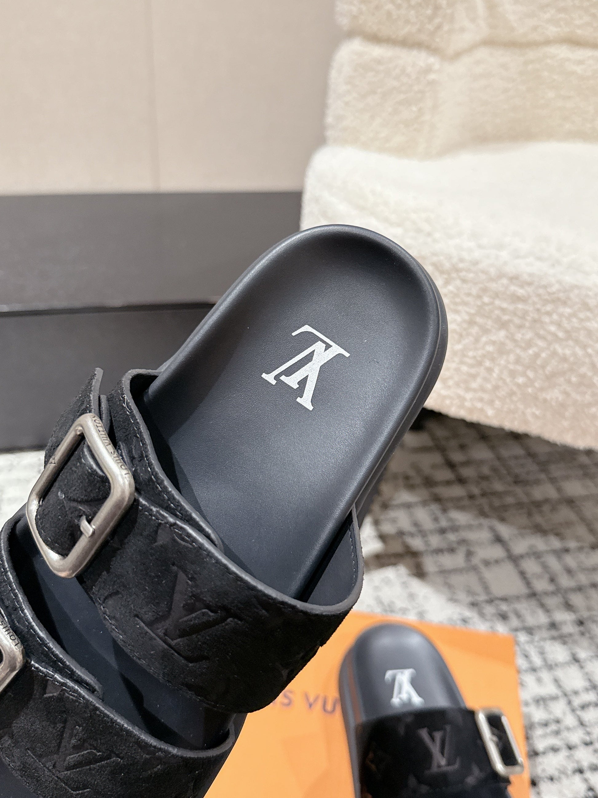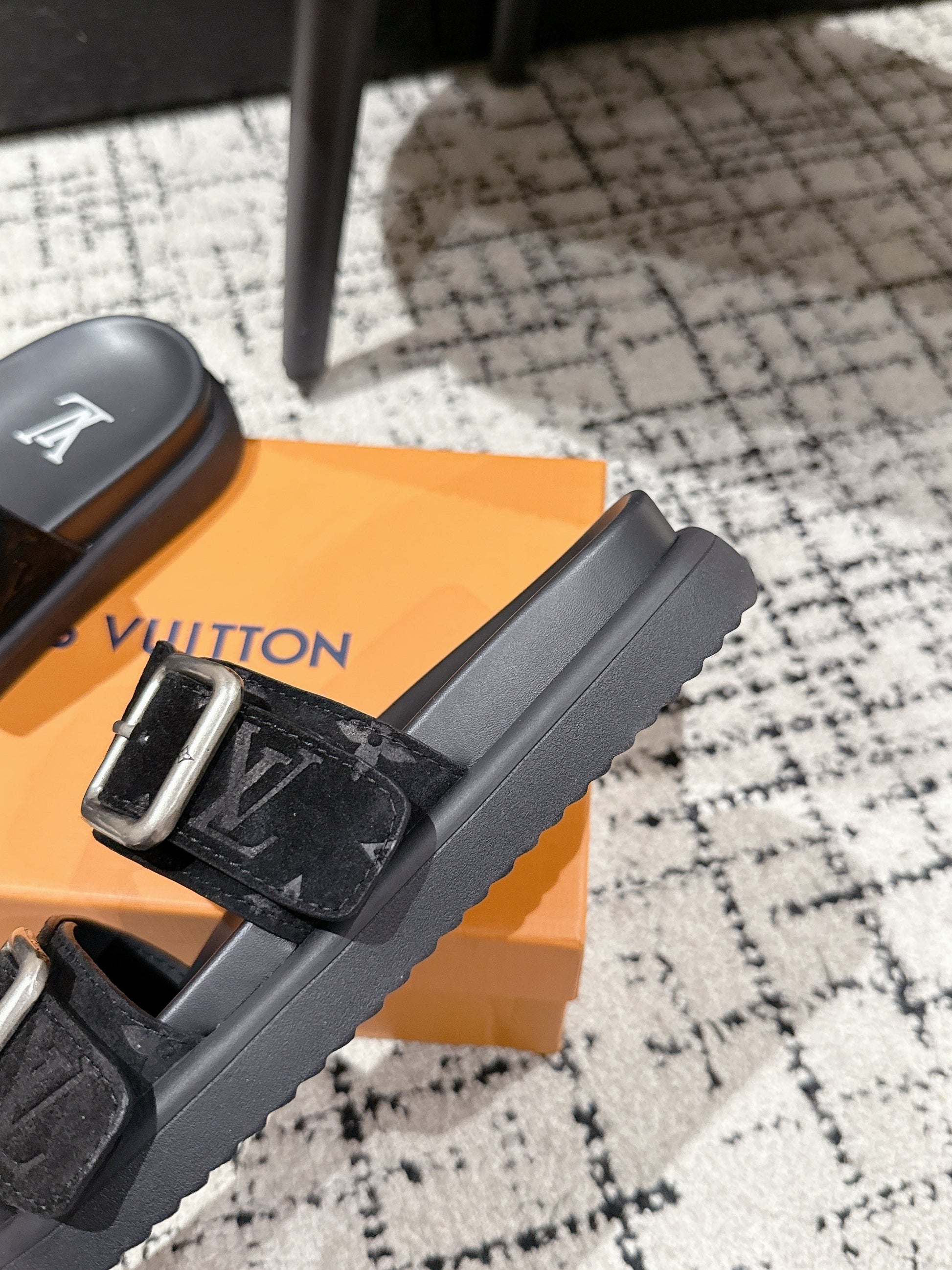LV Oasis sandal black monogram suede leather 383380
