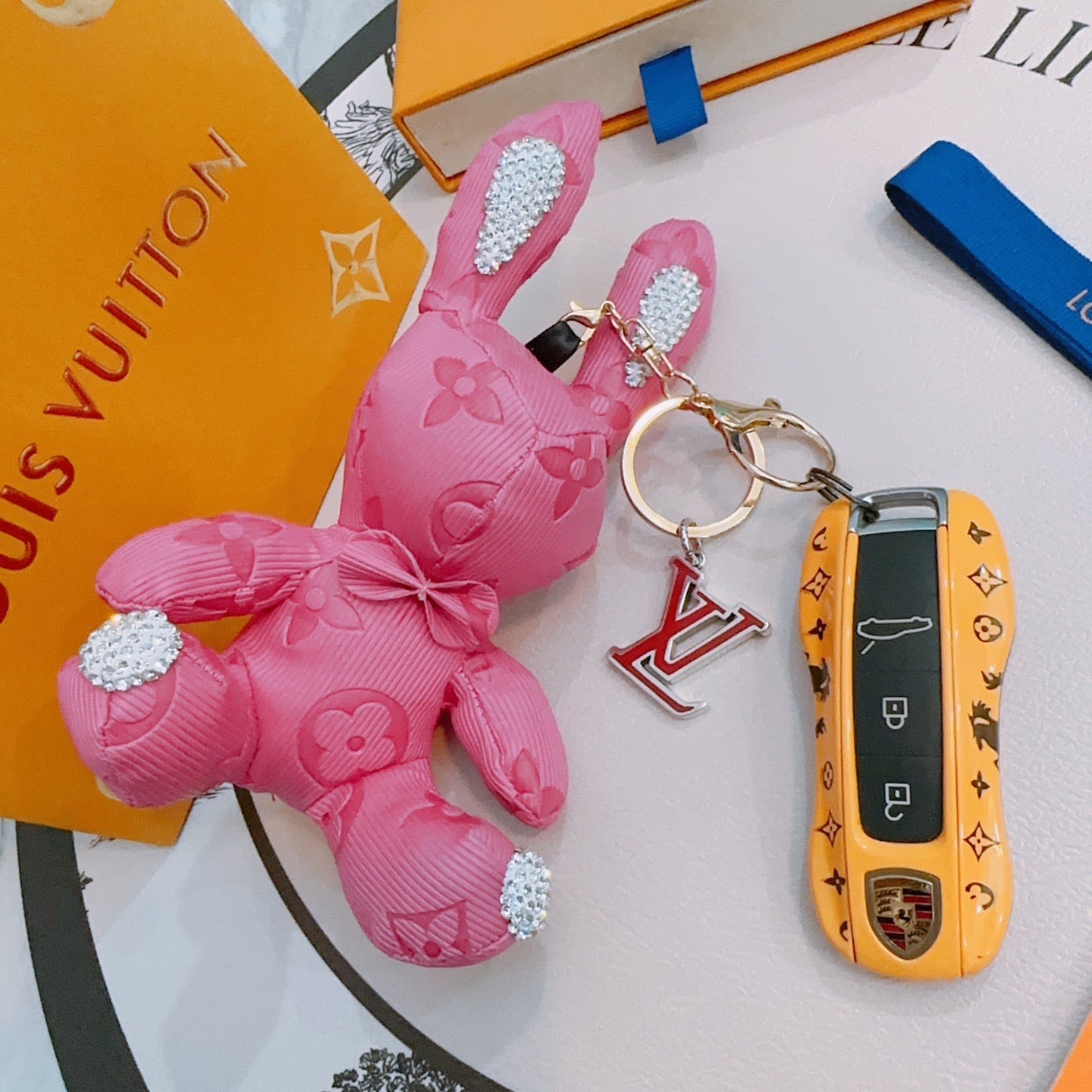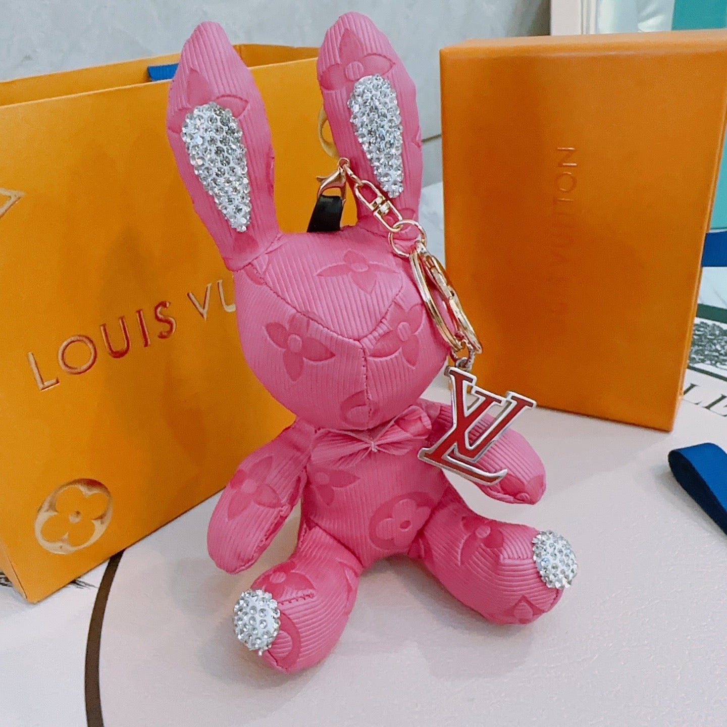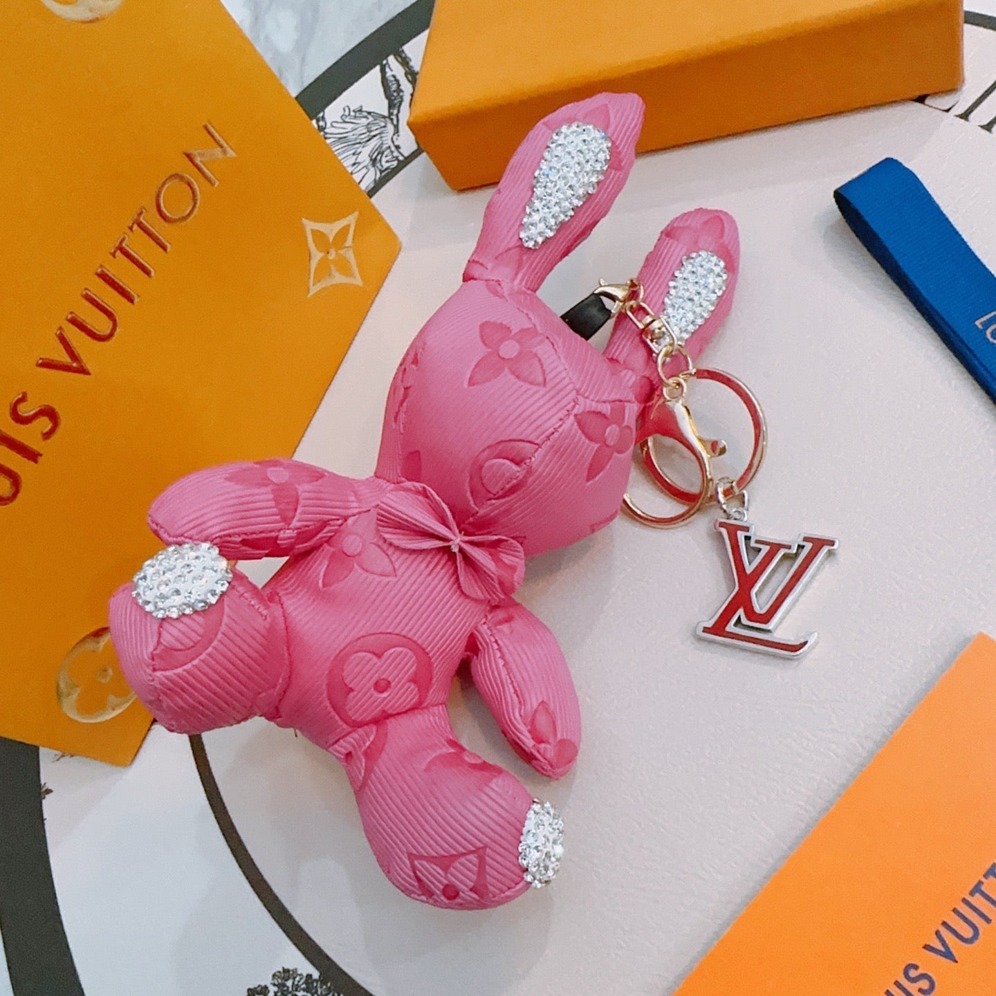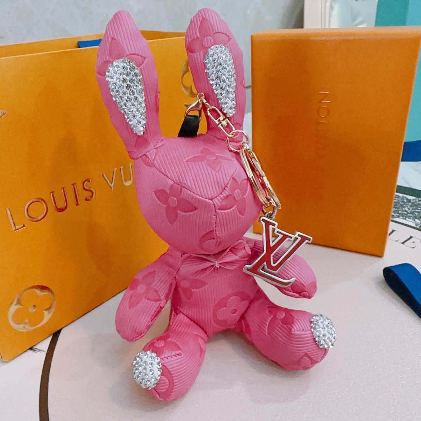 LV Pink Rabbit Charm With Rhinestone Accents
