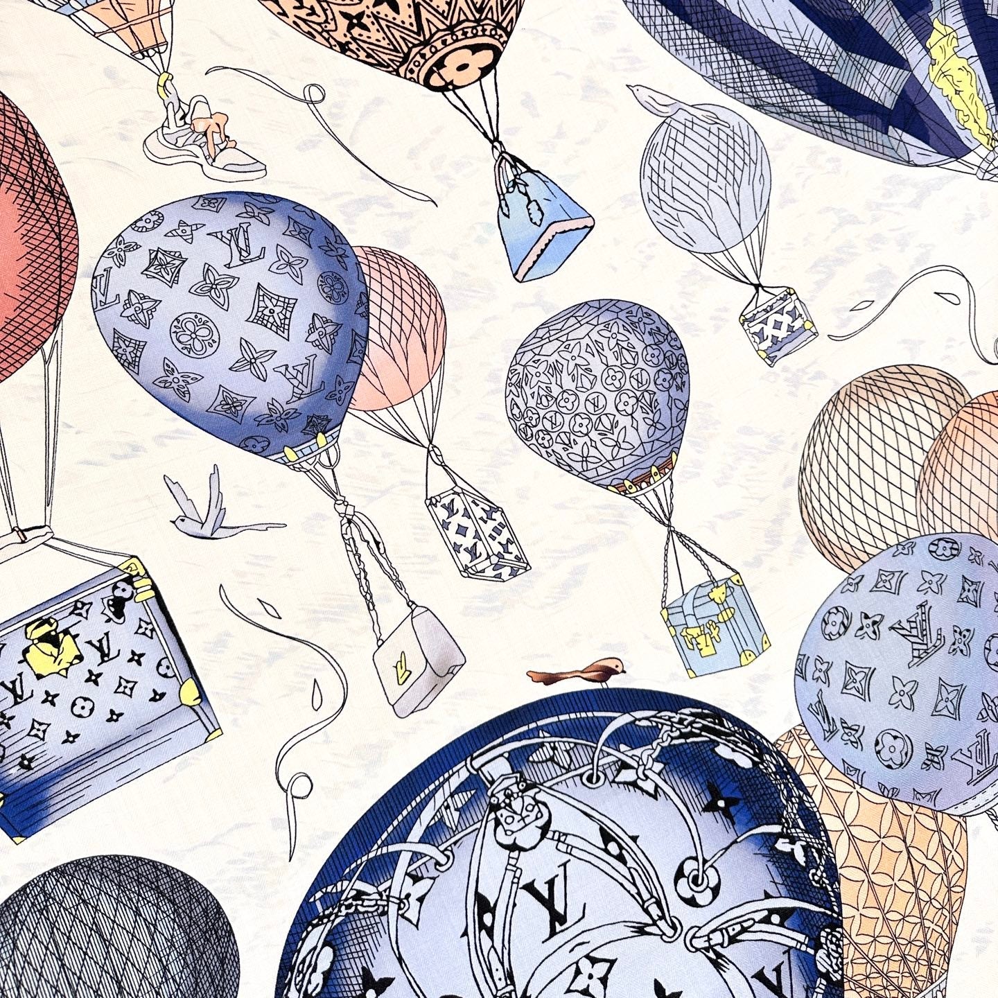 LV urkish Hot Air Balloon Scarf 140cm Blue Colorful Cashmere 971100