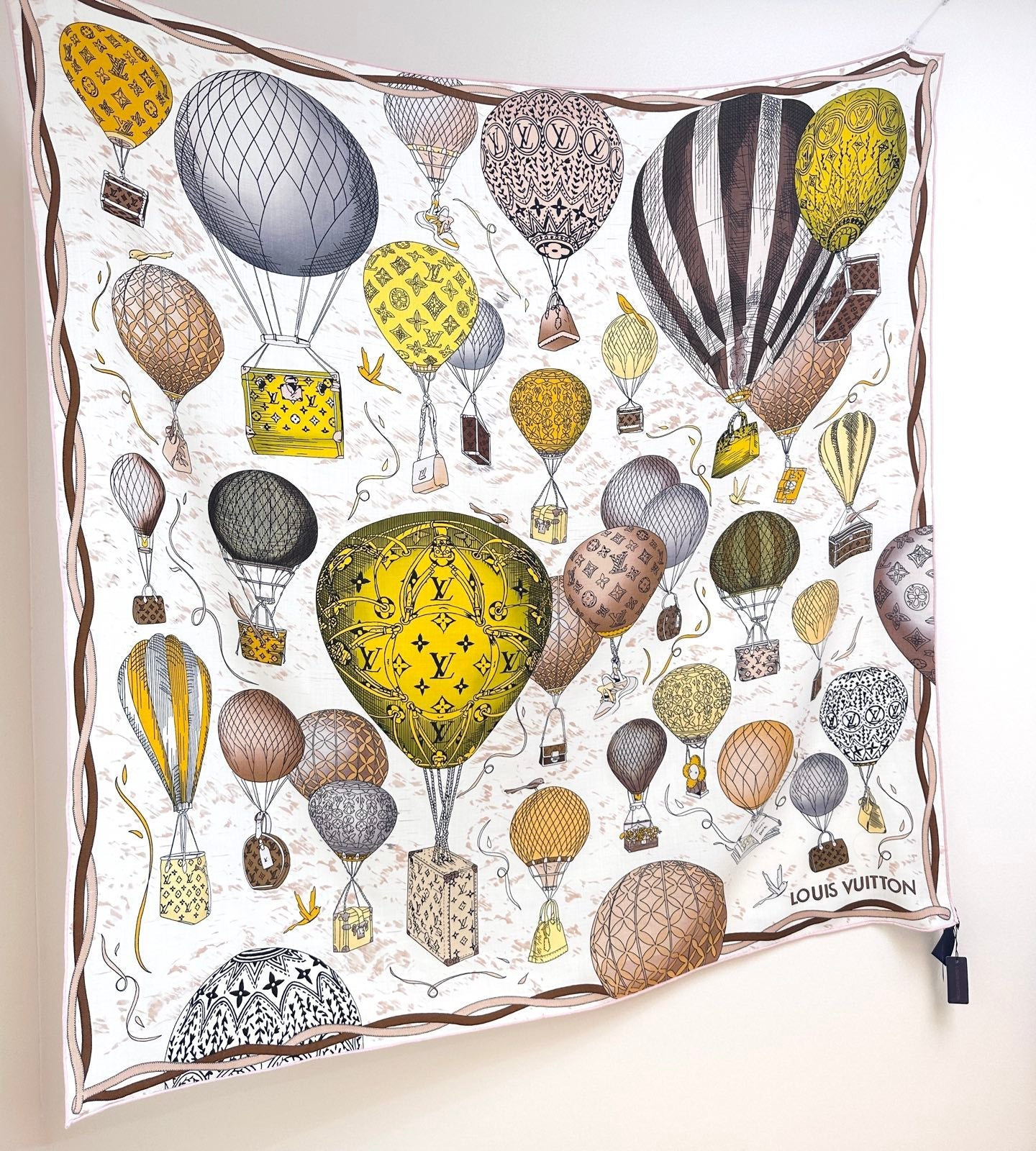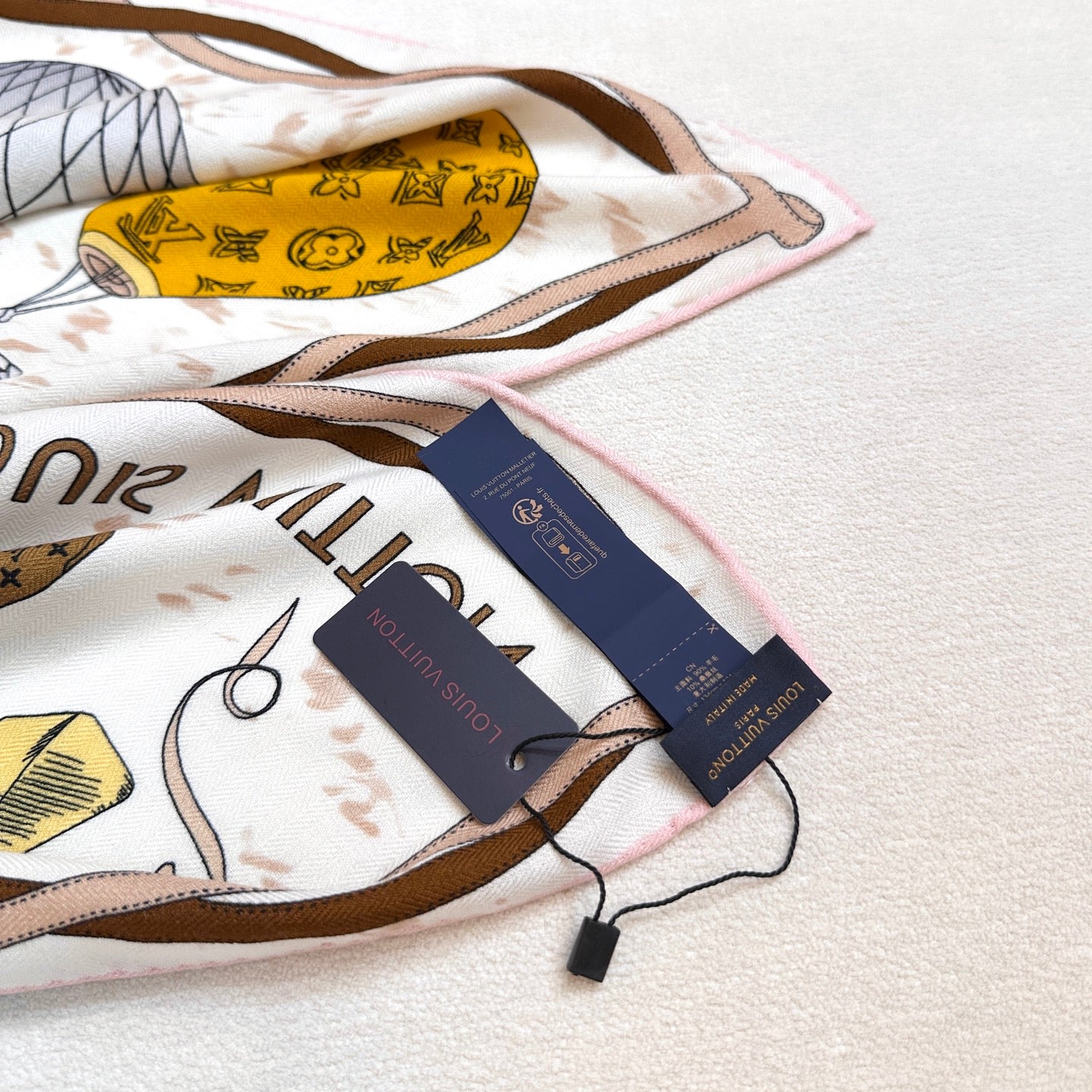 LV urkish Hot Air Balloon Scarf 140cm Yellow Colorful Cashmere 971101