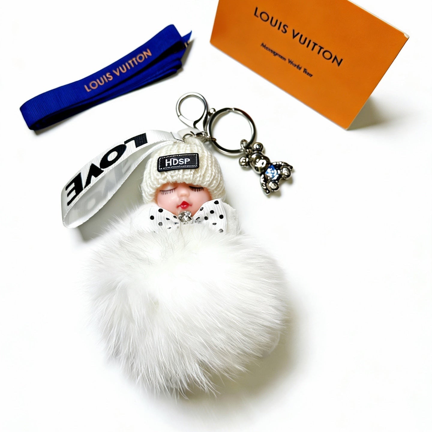 LV White Fluffy Plush Sleeping Baby Doll Charm