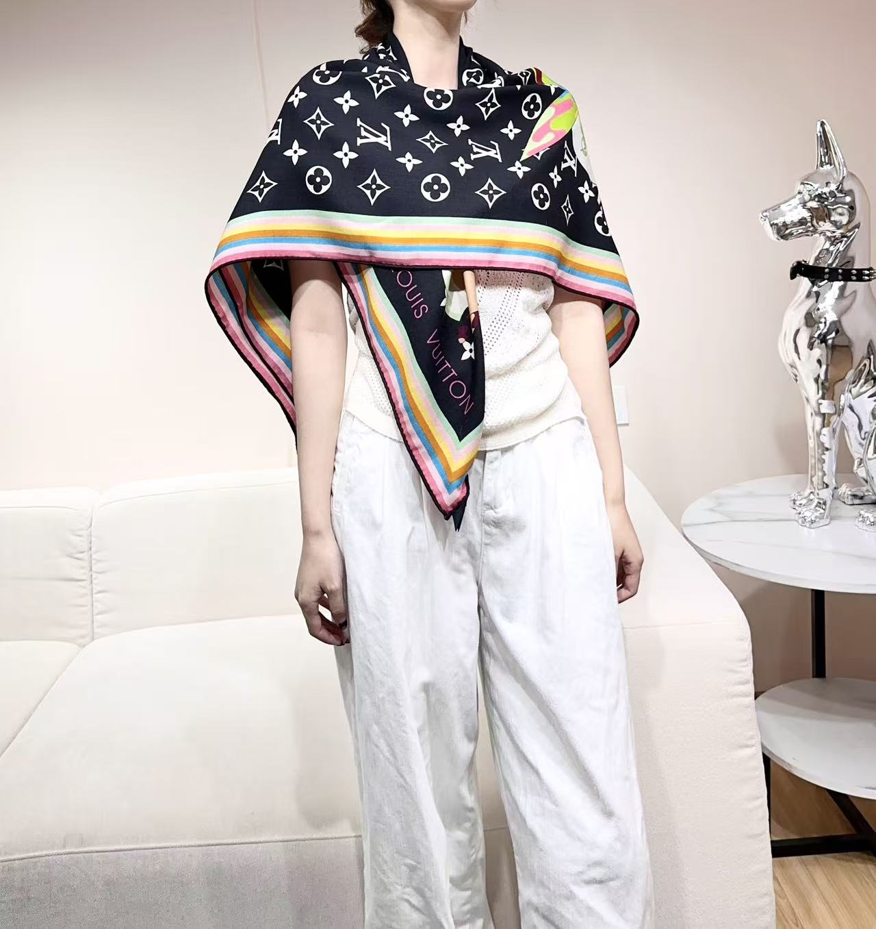LV x TM SUPERFLAT 140cm Black Multicolor Silk Wool 978740