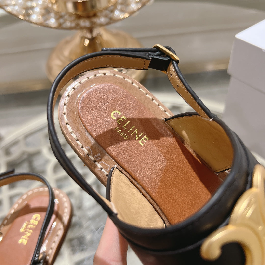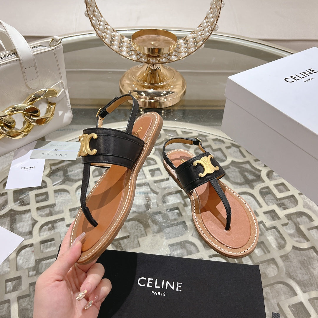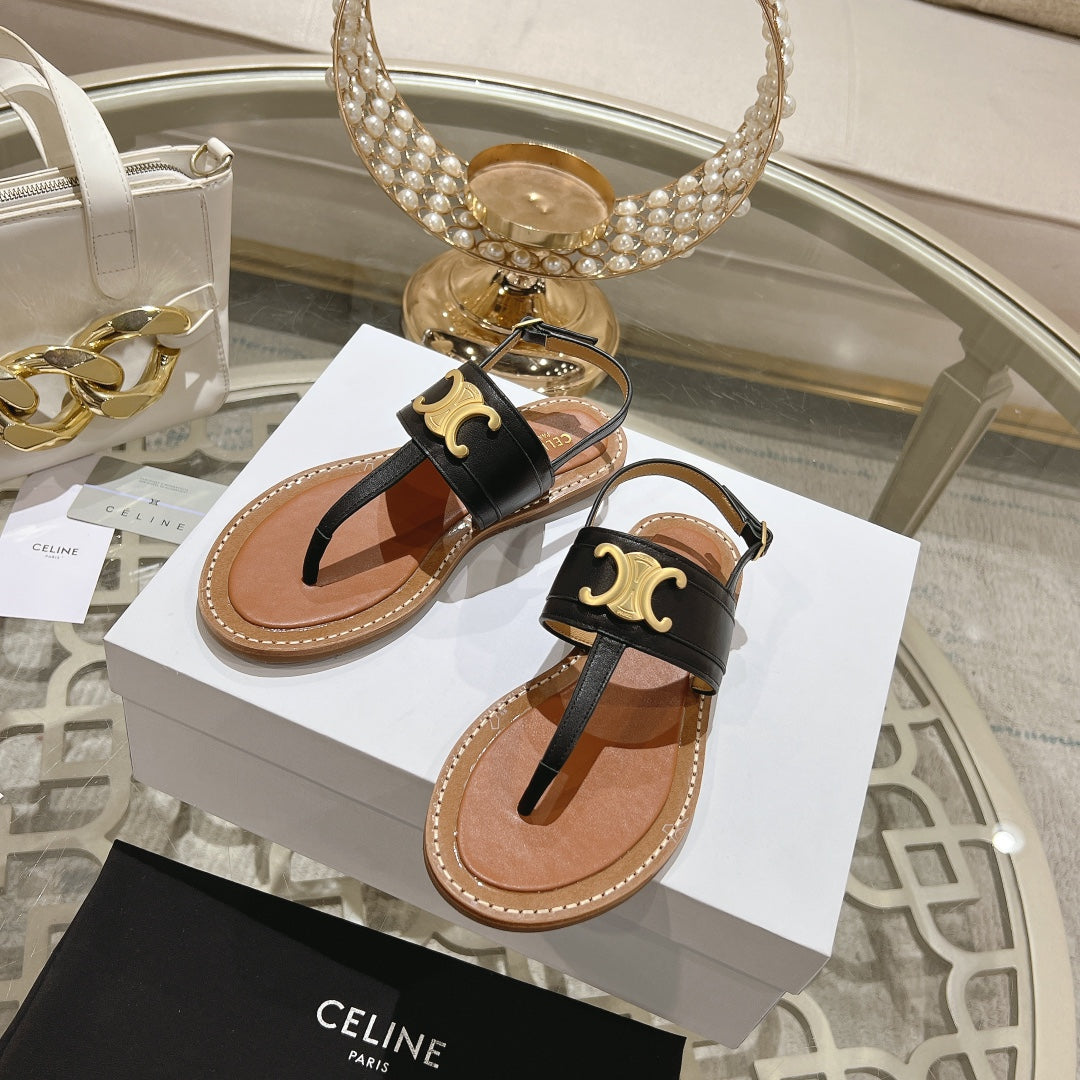 LYMPIA TRIOMPHE THONG IN CALFSKIN BLACK/BROWN