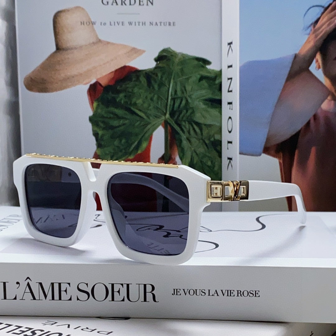 MASCOT PILOT SQUARE SUNGLASS 581377 IN WHTIE ACETATE GOLD METAL
