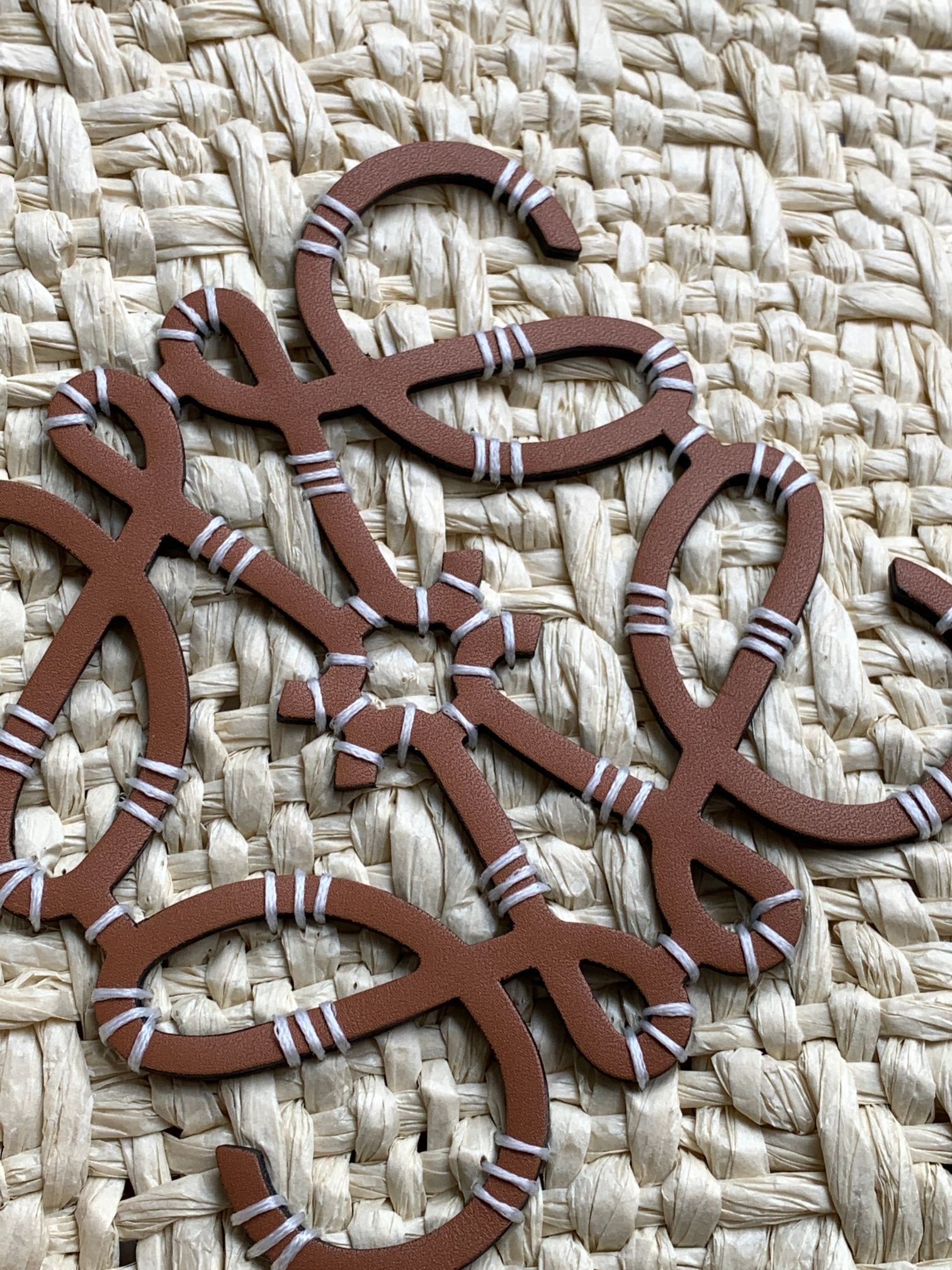Medium anagram basket bag in iraca palm and calfskin