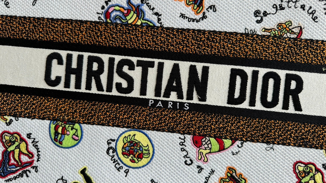 Medium CD Book Tote 36cm White Multicolor Dragon Zodiac Embroidery
