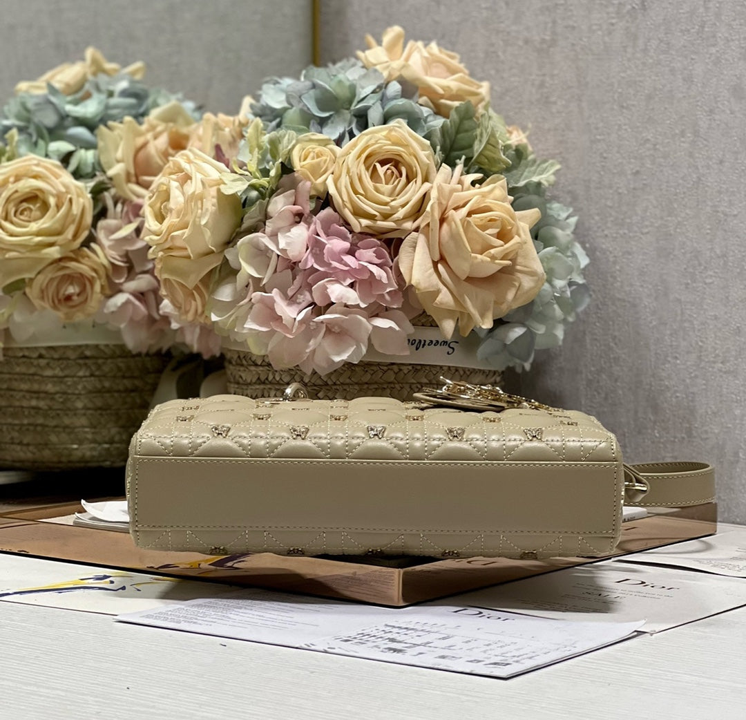 MEDIUM LADY D-JOY 26 BUTTERFLY STUD OLIVE LAMBSKIN