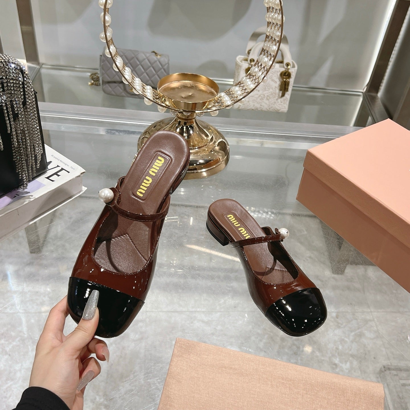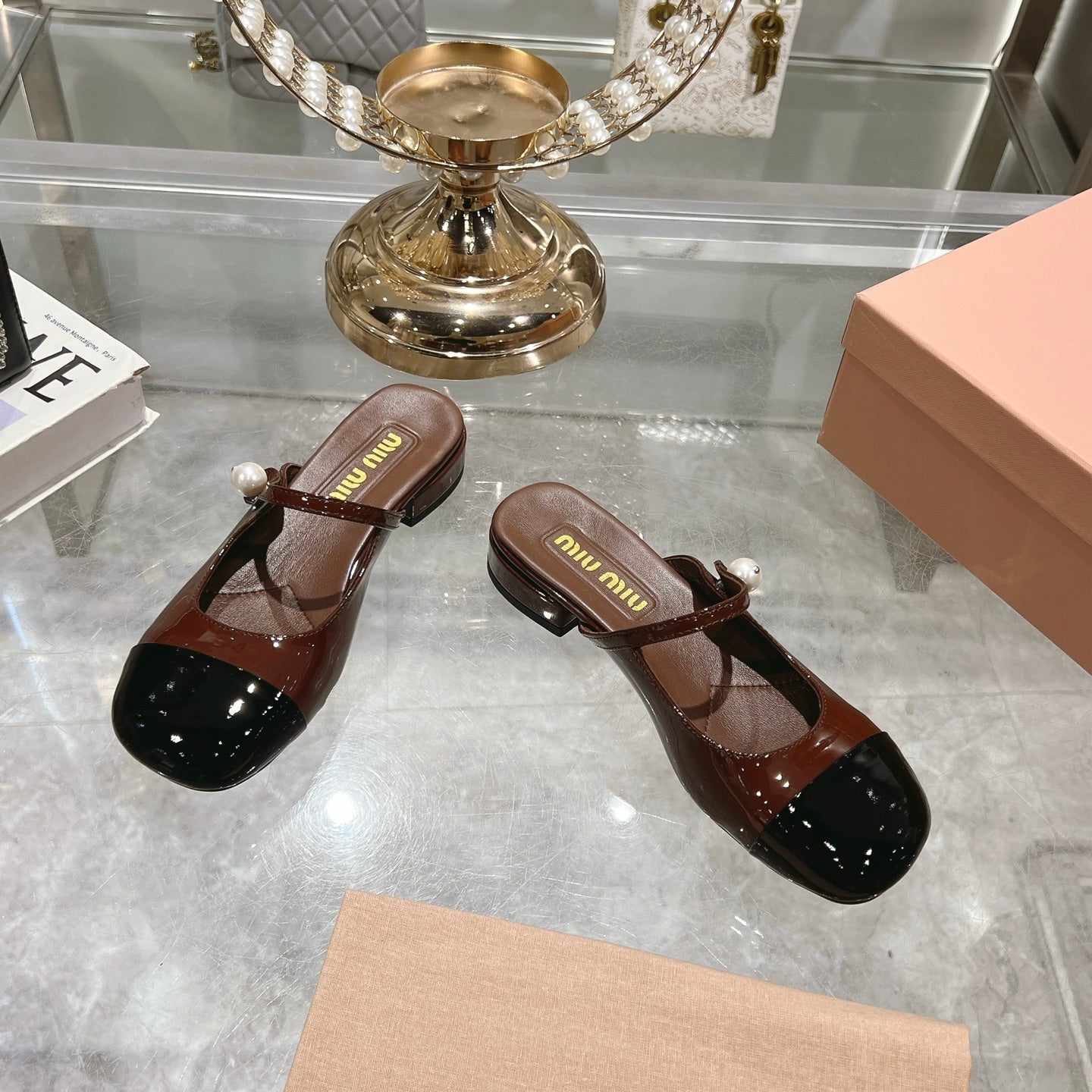 Miu 25C Flat Mule Gingerbread Brown Patent Leather 235305
