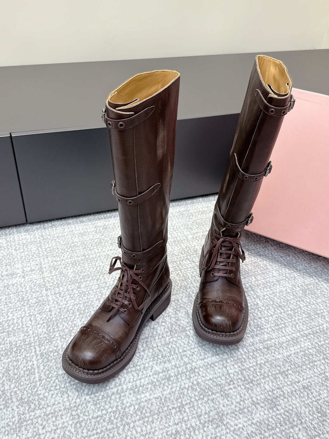 MIU MIU Cowboy High Boots Dark Brown Sheepskin 461844
