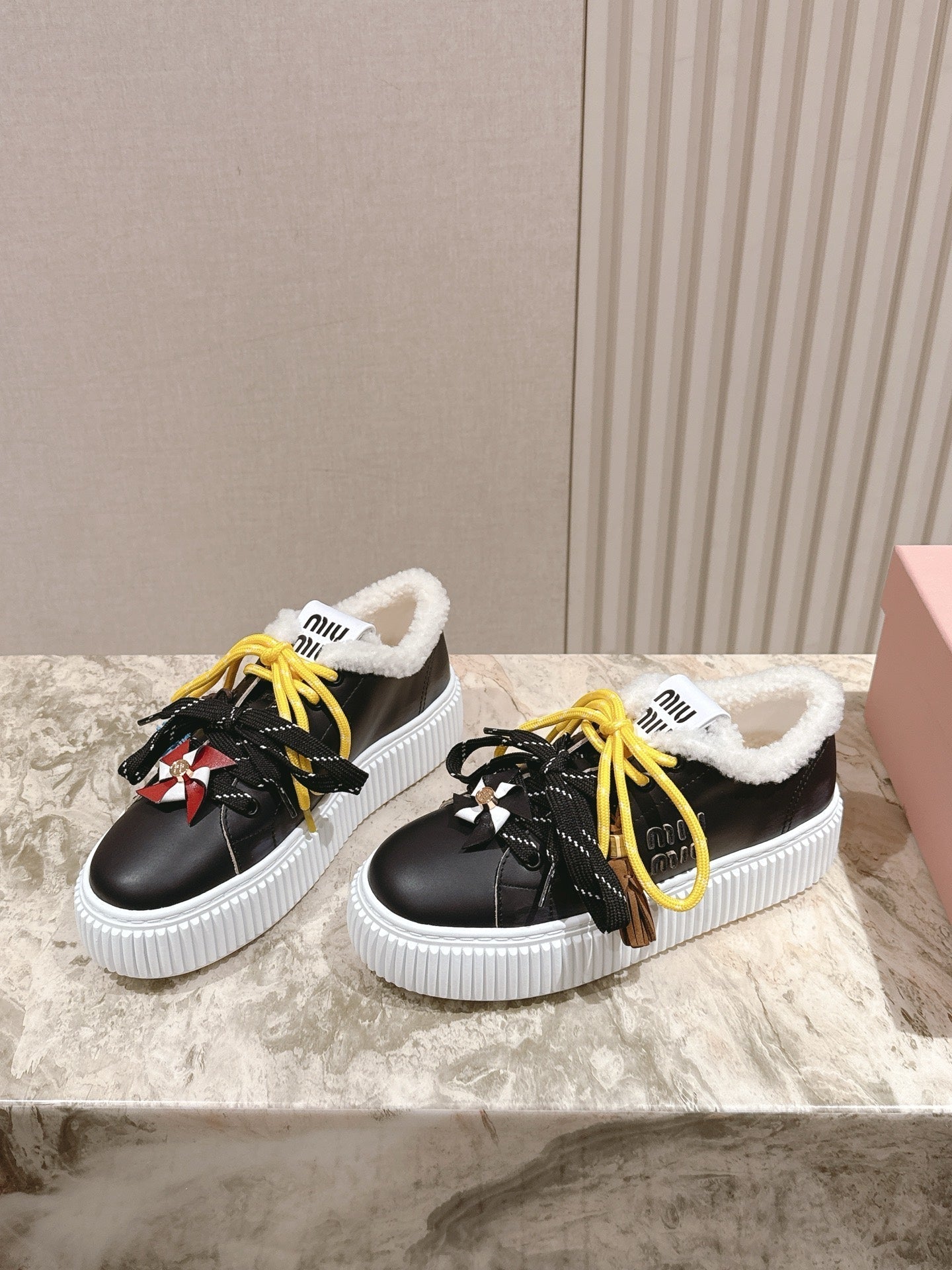 MIU MIU platform sneakers black leather wool 461860