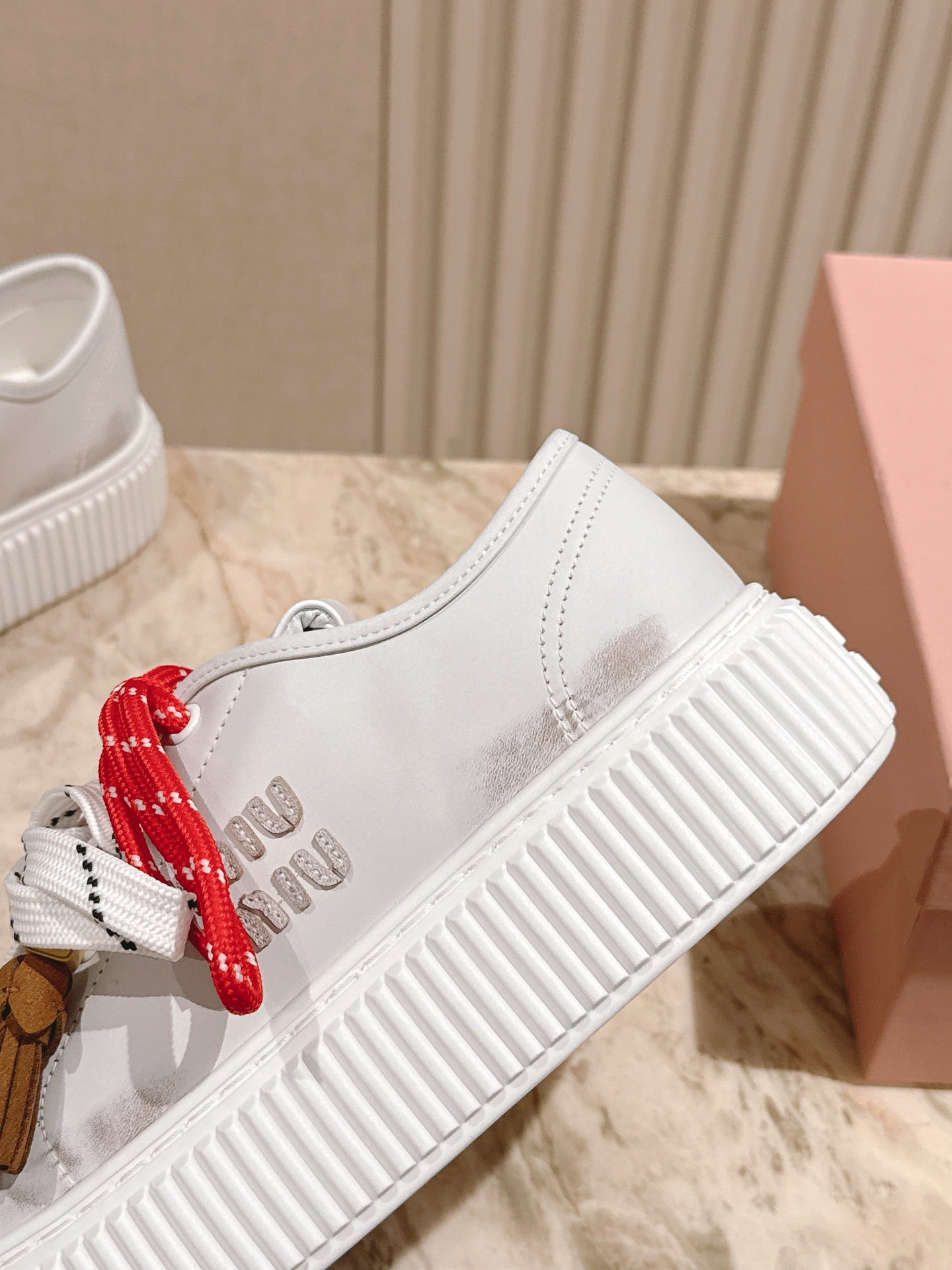 MIU MIU platform sneakers white red leather 461866