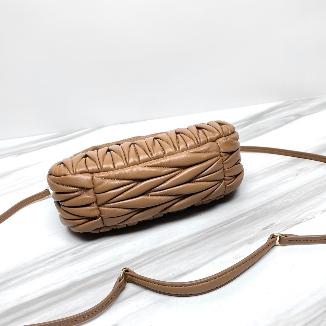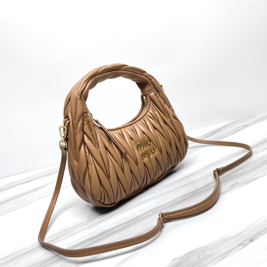 miu wander hobo medium 23cm brown metalasse lambskin