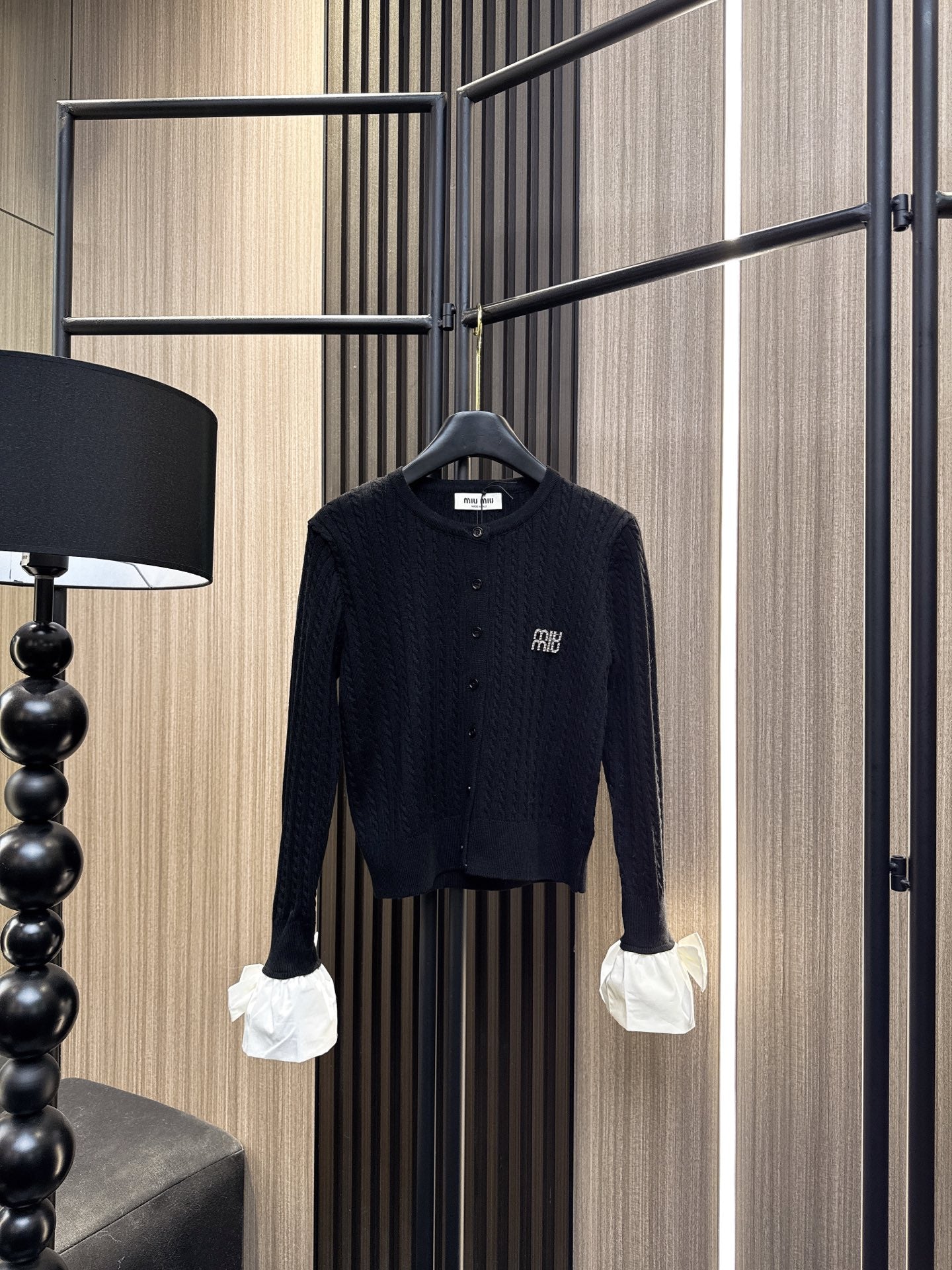 Miumiu 2025 Cardigan With Bow Cuff Cotton Wool