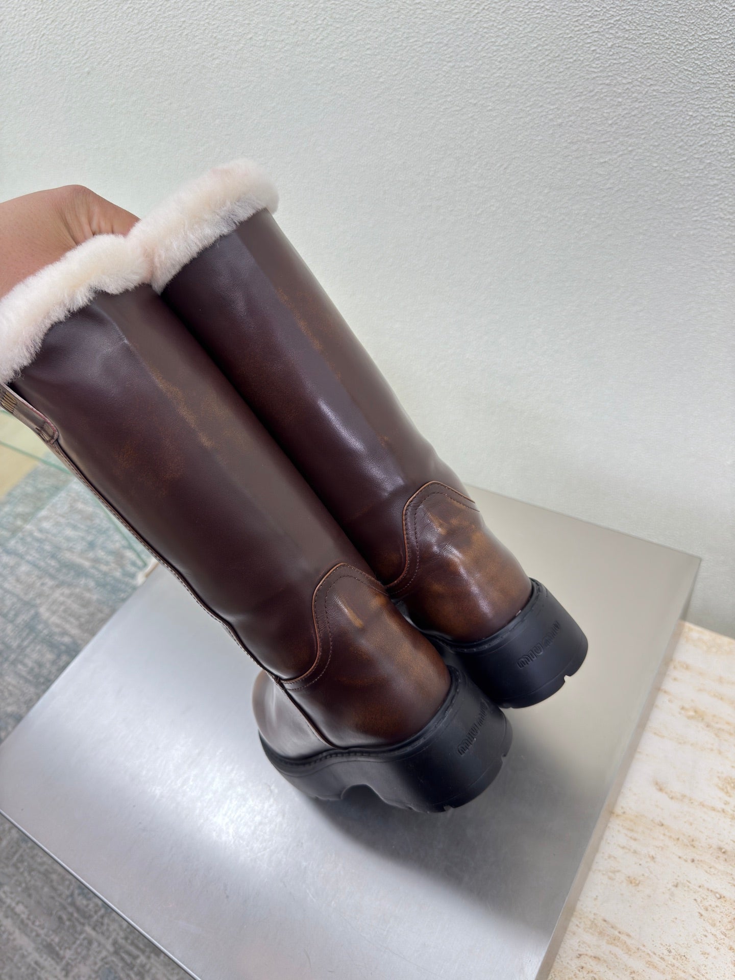 MiuMiu 25 platform boots brown calfskin wool 522430