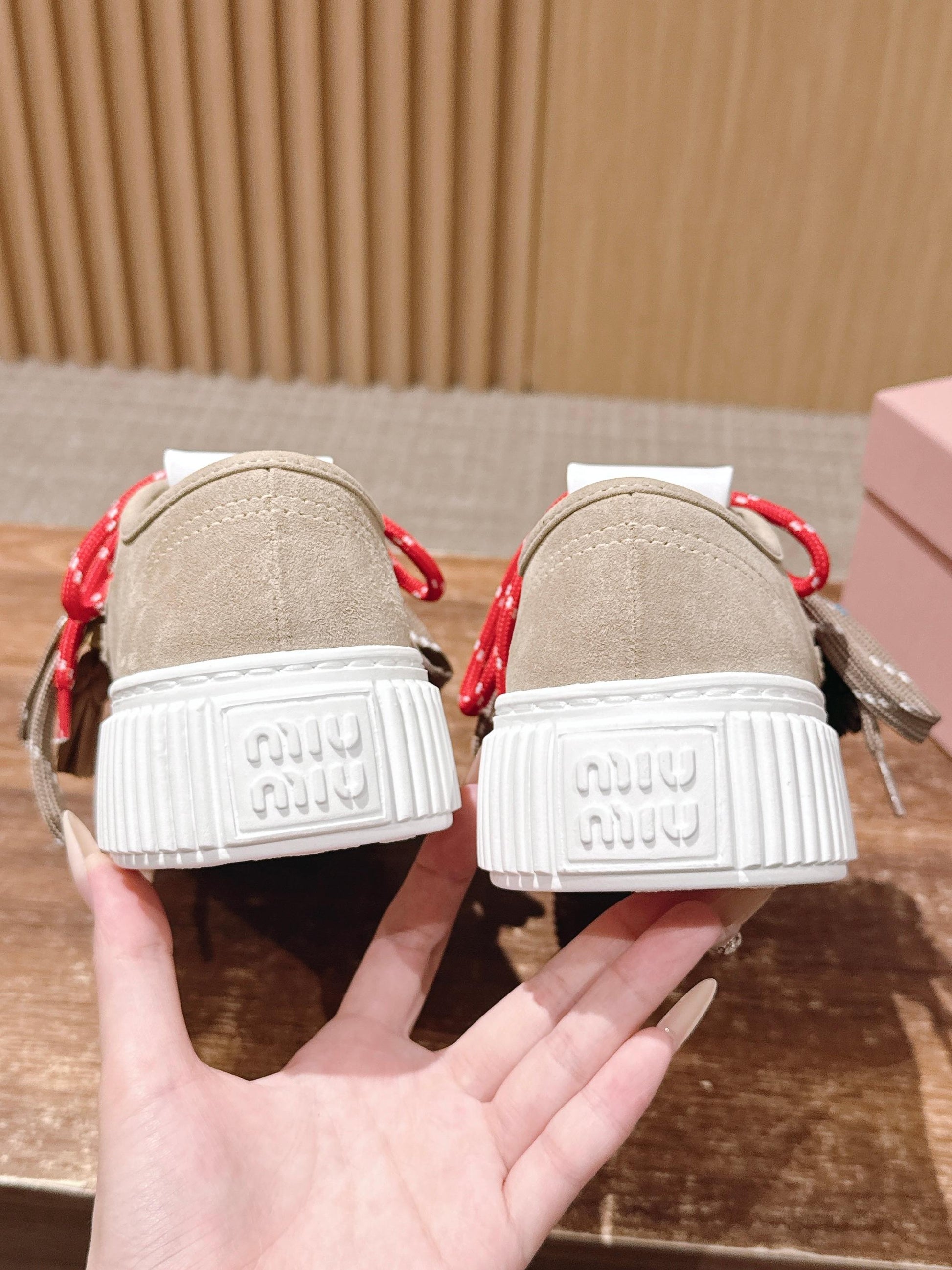 Miumiu 25 Platform Sneakers Beige Red Suede Wool 553690