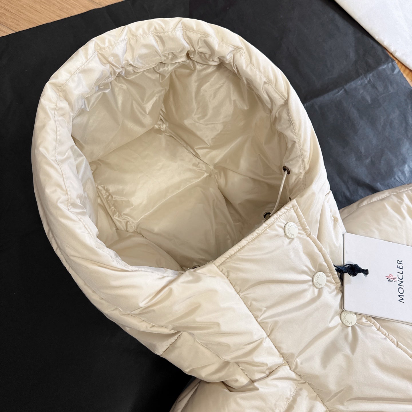 Moncler 2025 Chamer Wool-Trimmed Hooded Long Jacket Cream Down