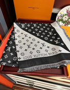 MONOGRAM 140 CM SQUARE SCARF IN BLACK MIX WHITE CASHMERE 391107