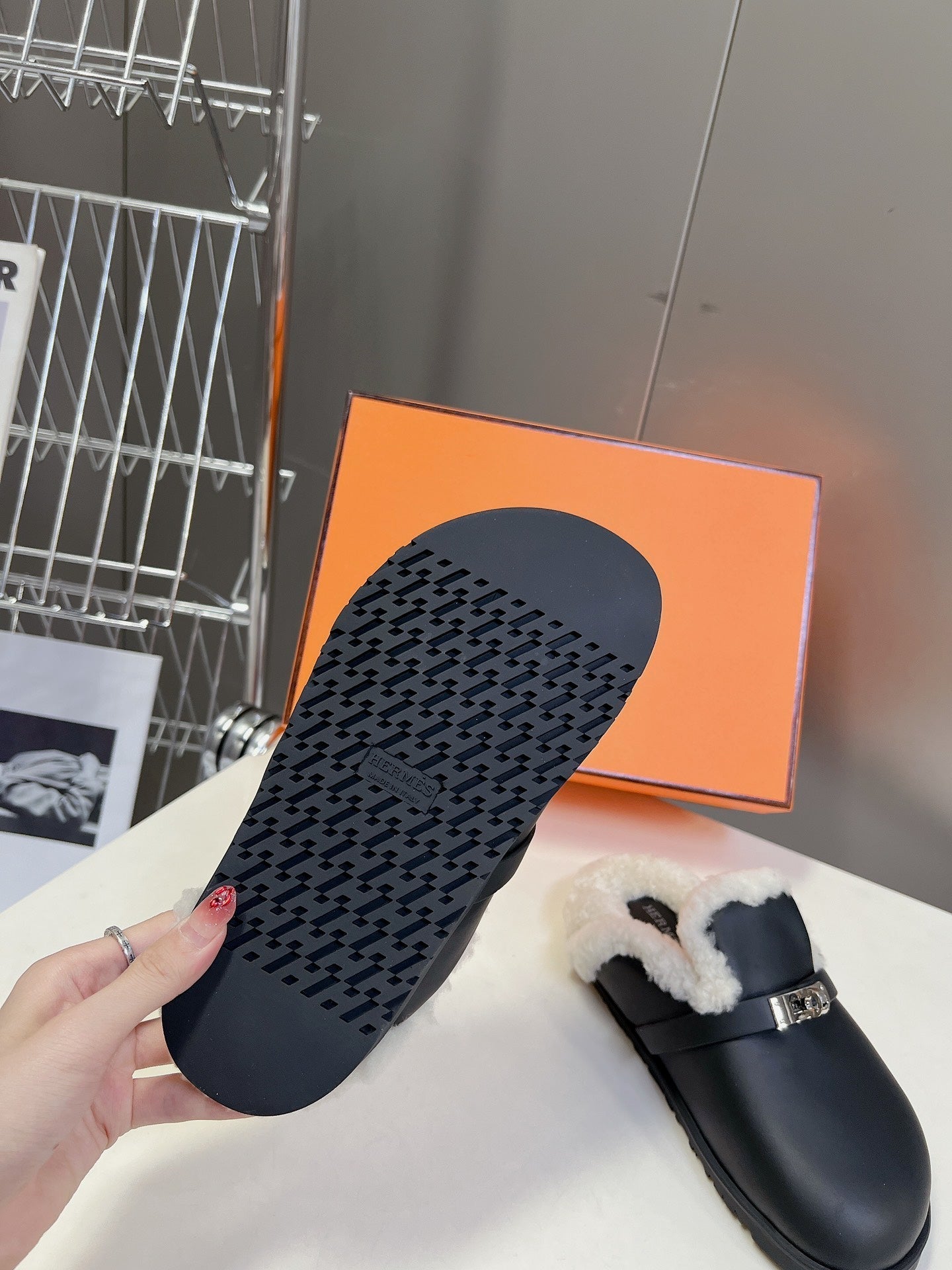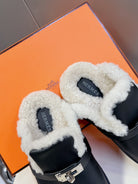 OZ Mule Black Calfskin White Shearling