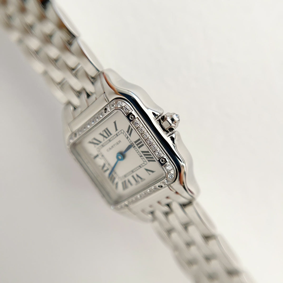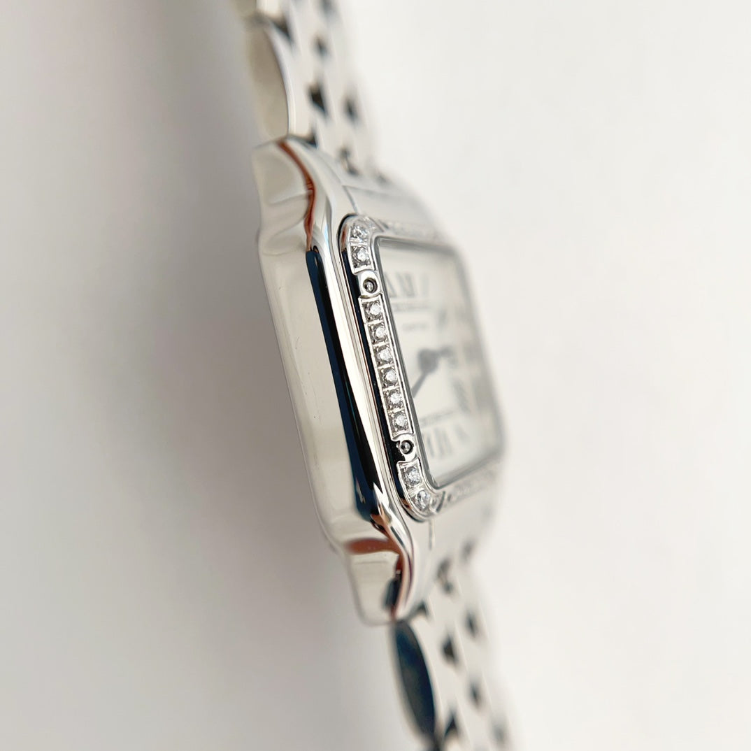 Panthere 22mm Silver Diamond Bezel Double Chain 44cm