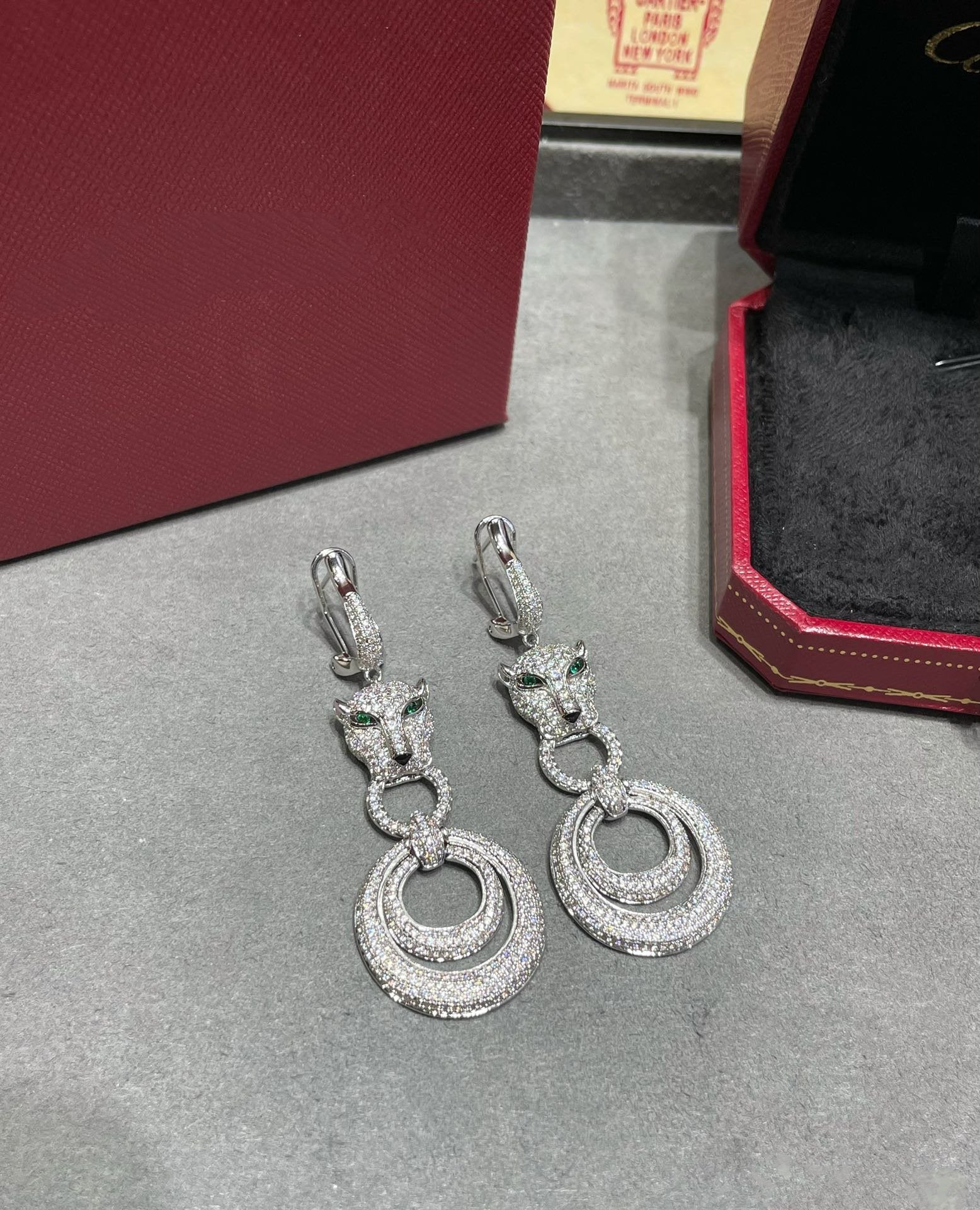 PANTHERE DE CARTI SILVER DIAMOND DROP EARRINGS