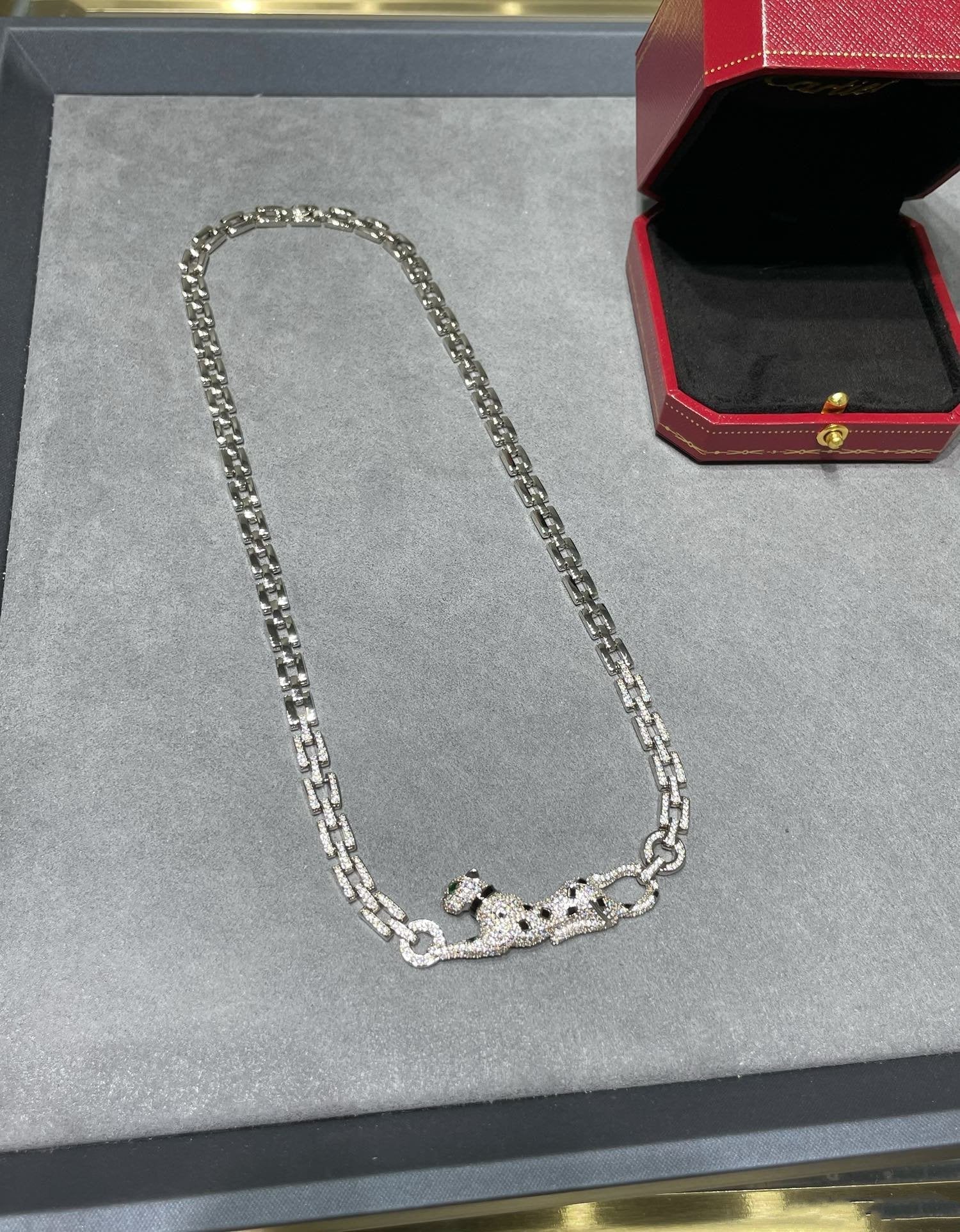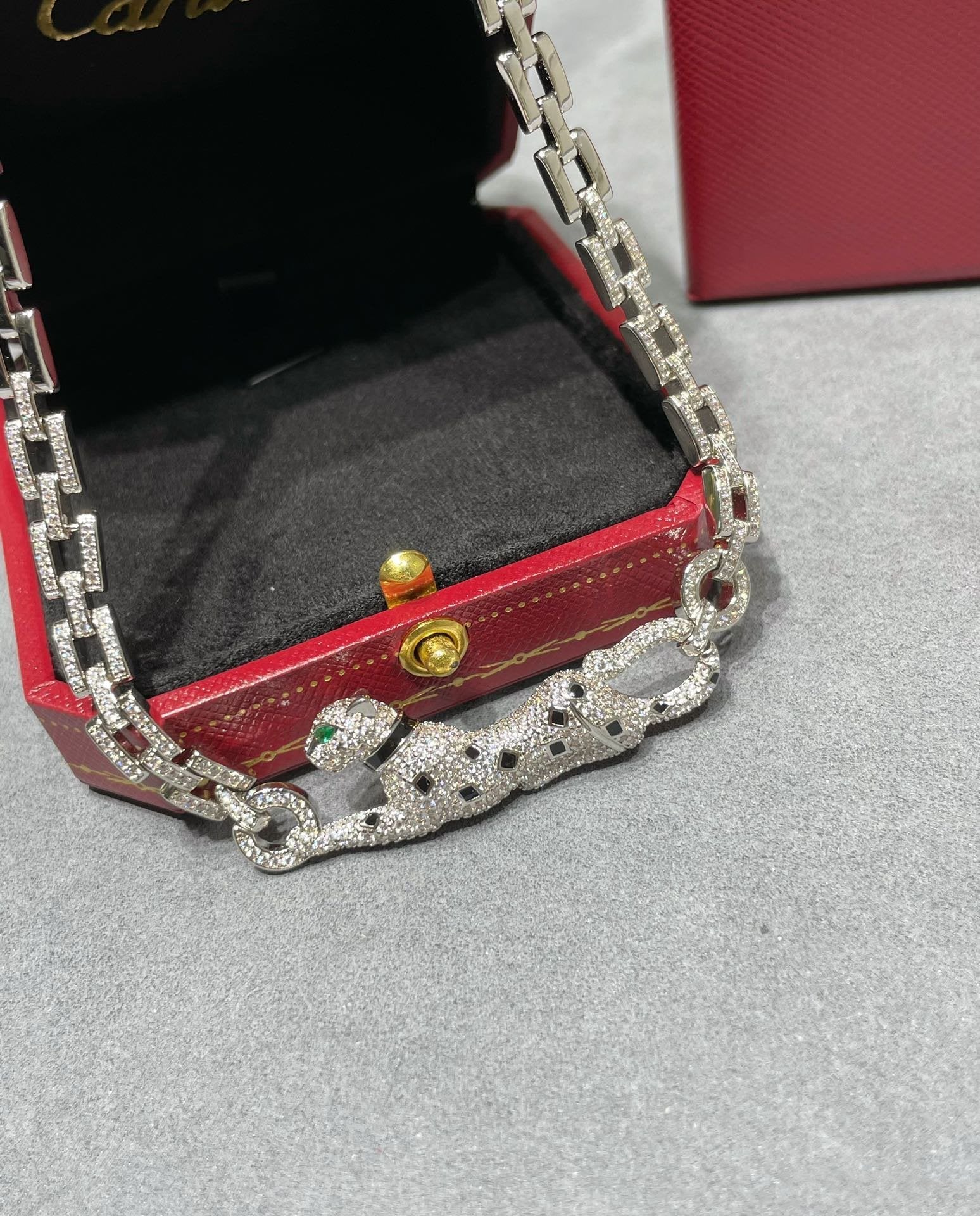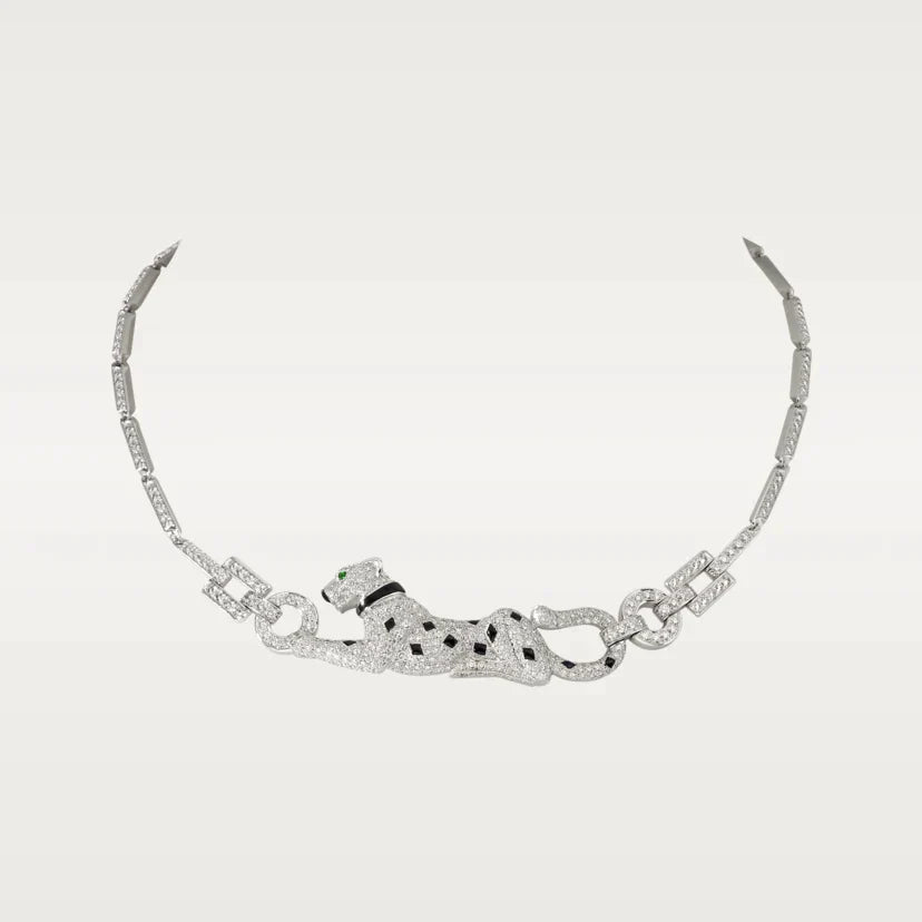 PANTHERE DE CARTI SILVER DIAMOND ONYX CHAIN NECKLACE