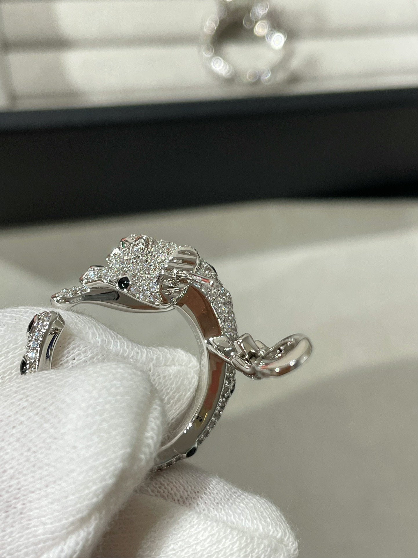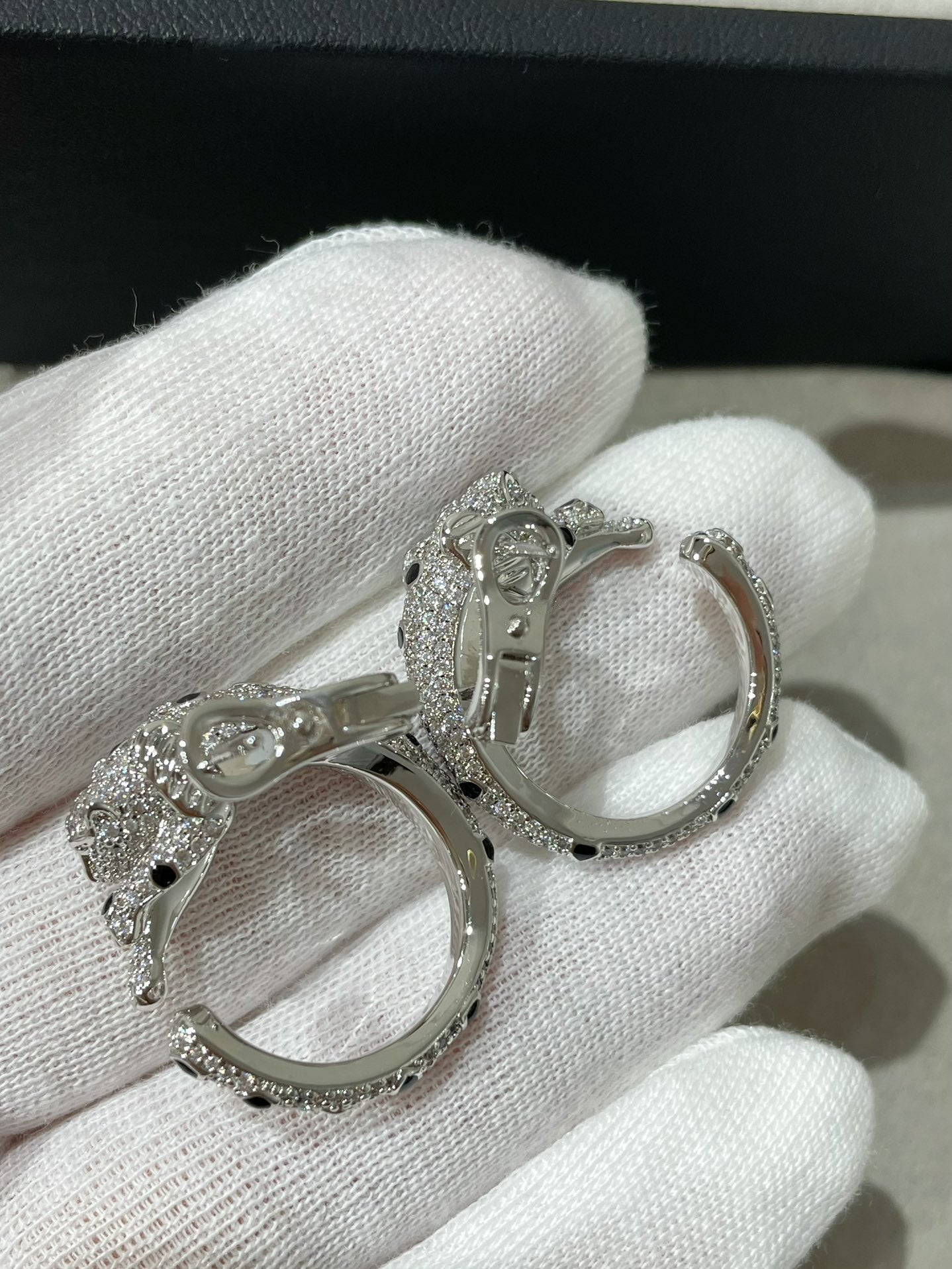 PANTHERE DIAMOND ONYX GREEN EMERAL SILVER EARRINGS