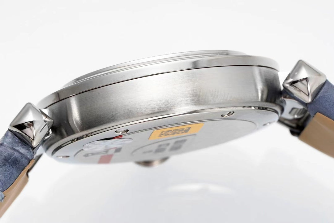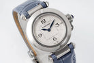 pasha 30mm quartz stainless steel white dial cloud blue leather