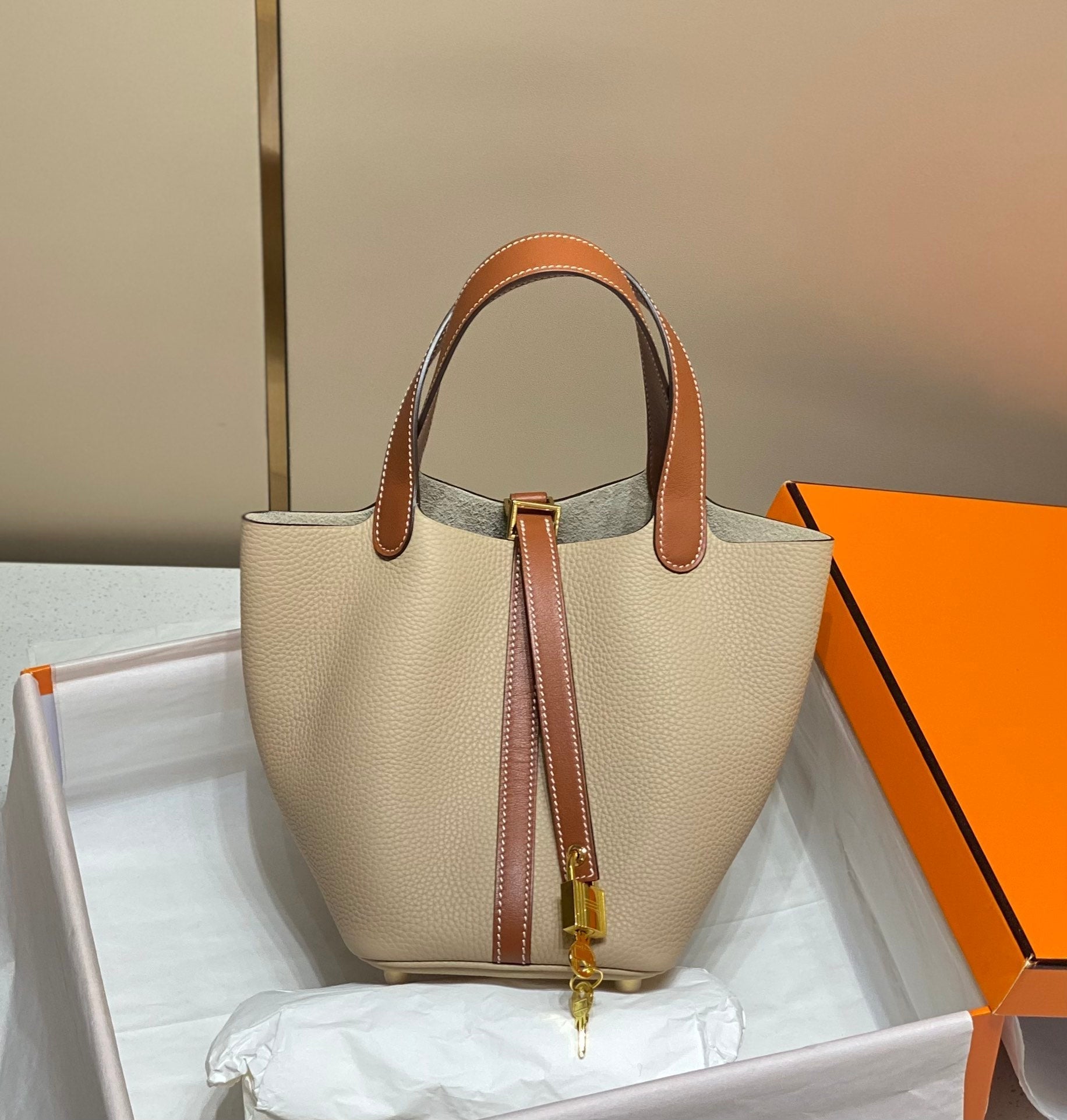 picotin lock 18 beige brown togo ghw